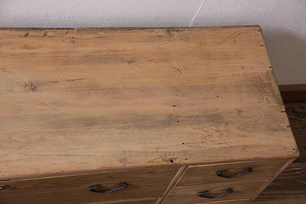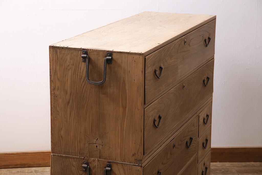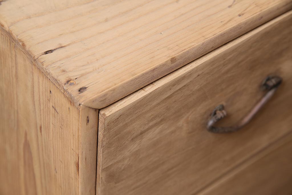 アンティーク家具 ストリップド(剥離) 栓材 細身の取っ手がモダンなチェスト(タンス、衣装箪笥)(R-045915)です。