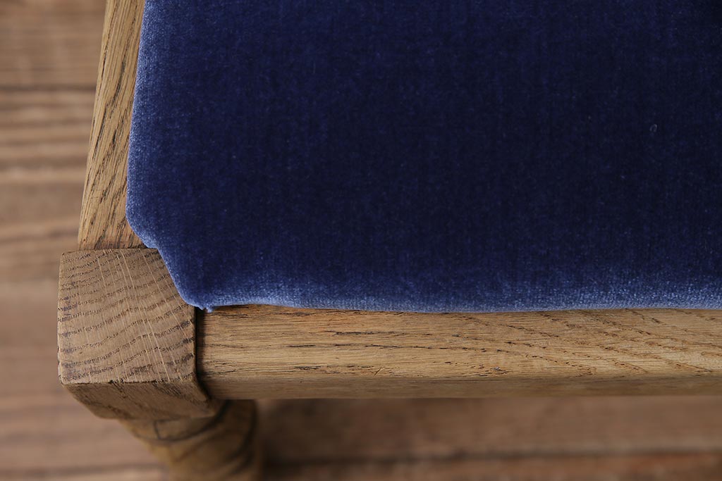 座面生地とクッション(座面内スポンジ)は当店にて張り替えておりますので、しっかりとしております。