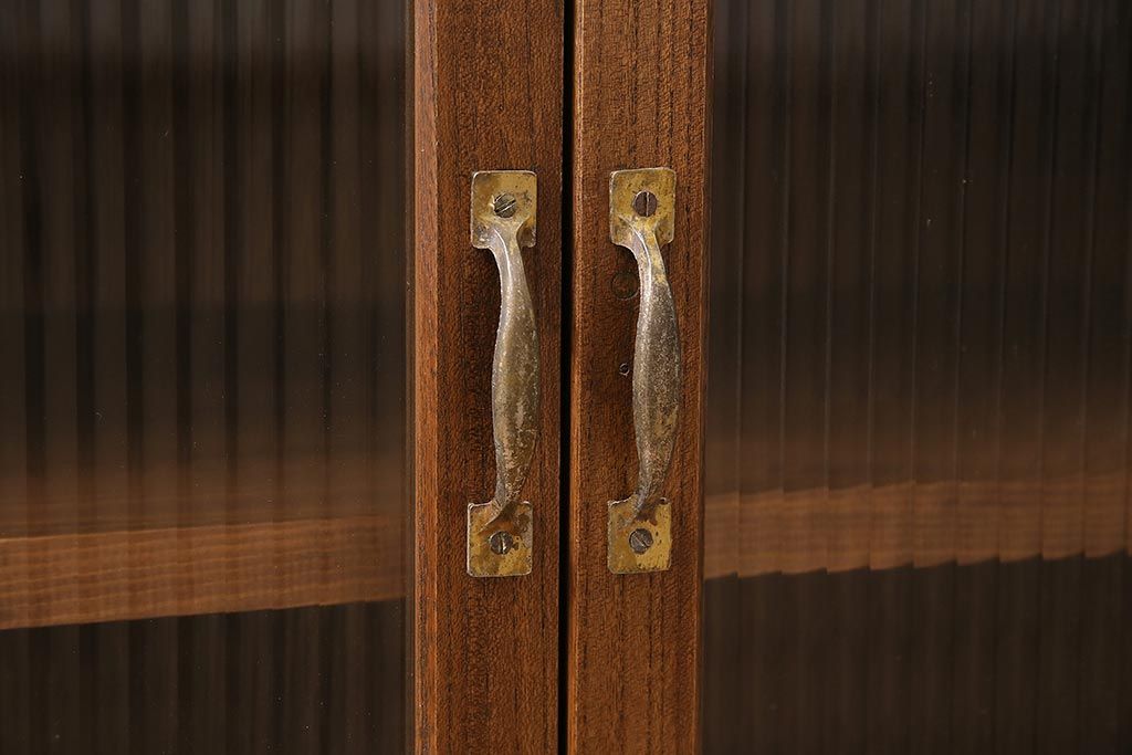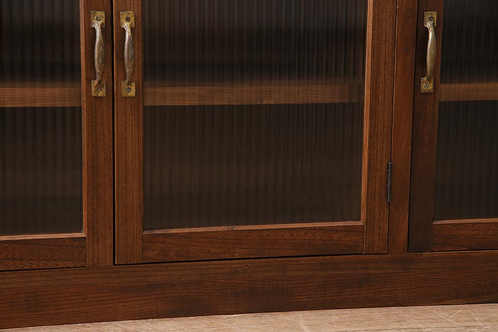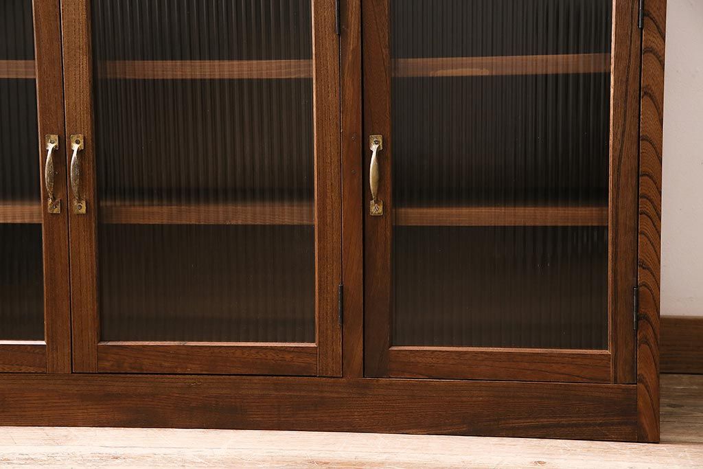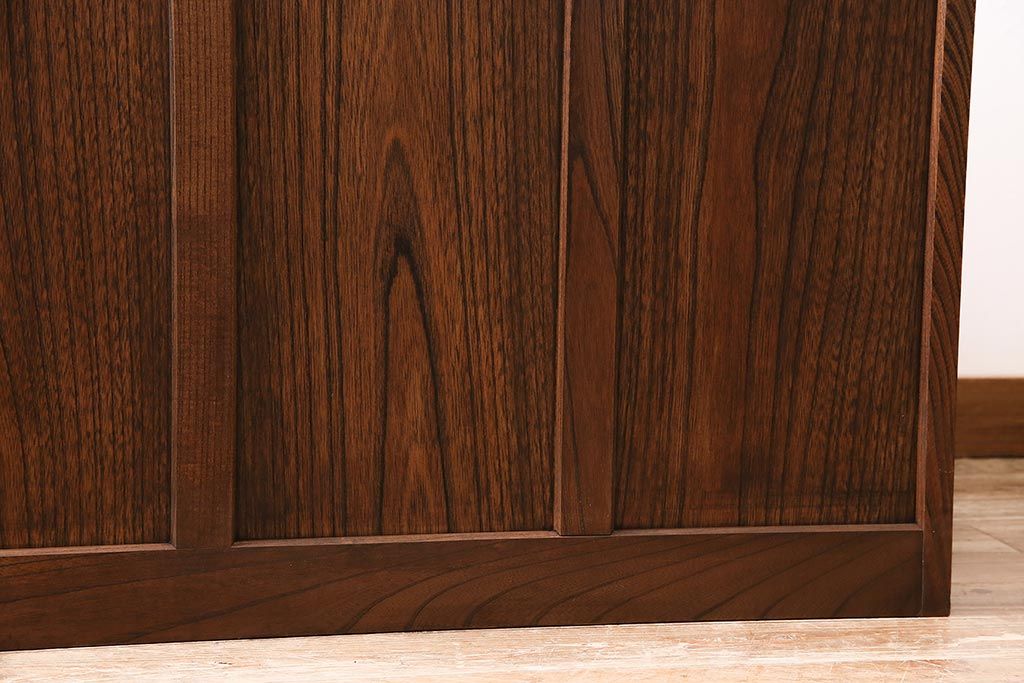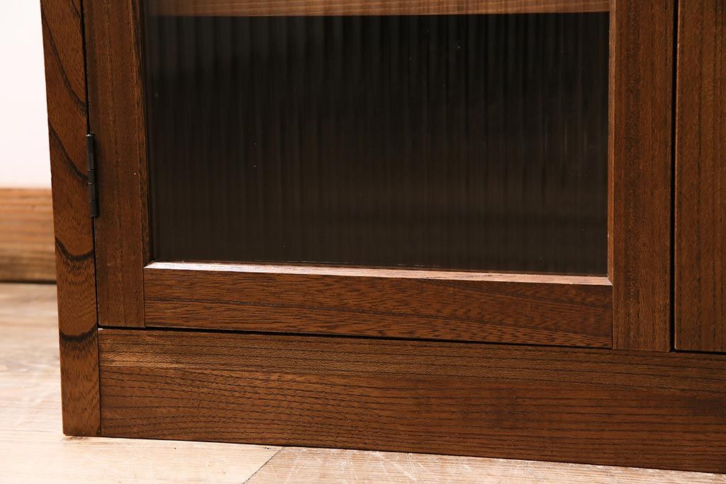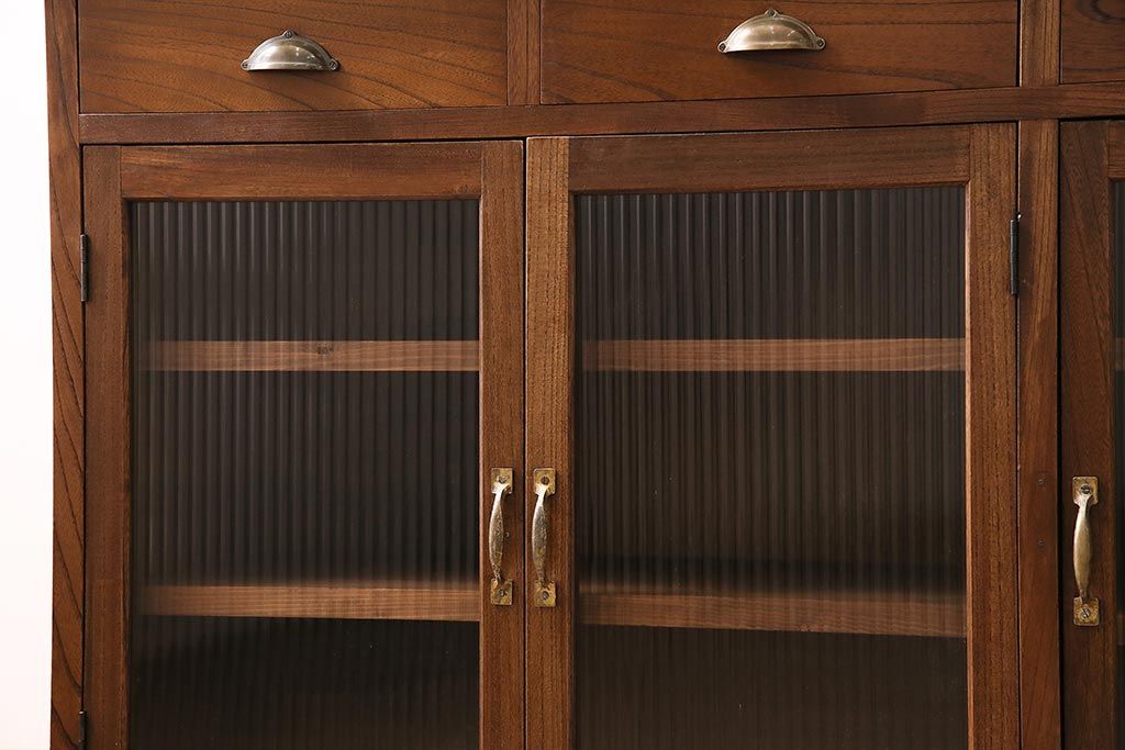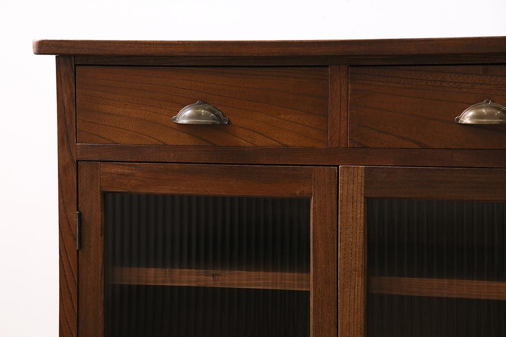 キャビネット・戸棚> サイドボード > 中古 総ケヤキ 無垢材 モールガラス 引き出し付きの木製カウンター(戸棚、サイドボード、リビングボード)(定価25万円)(R-045950)