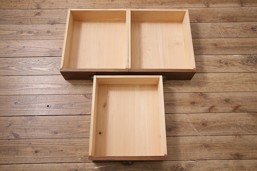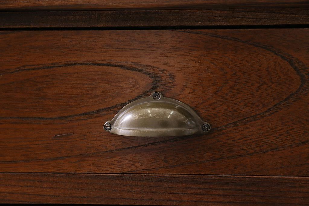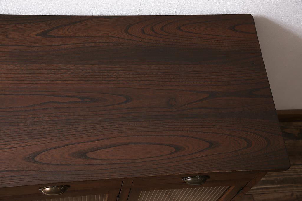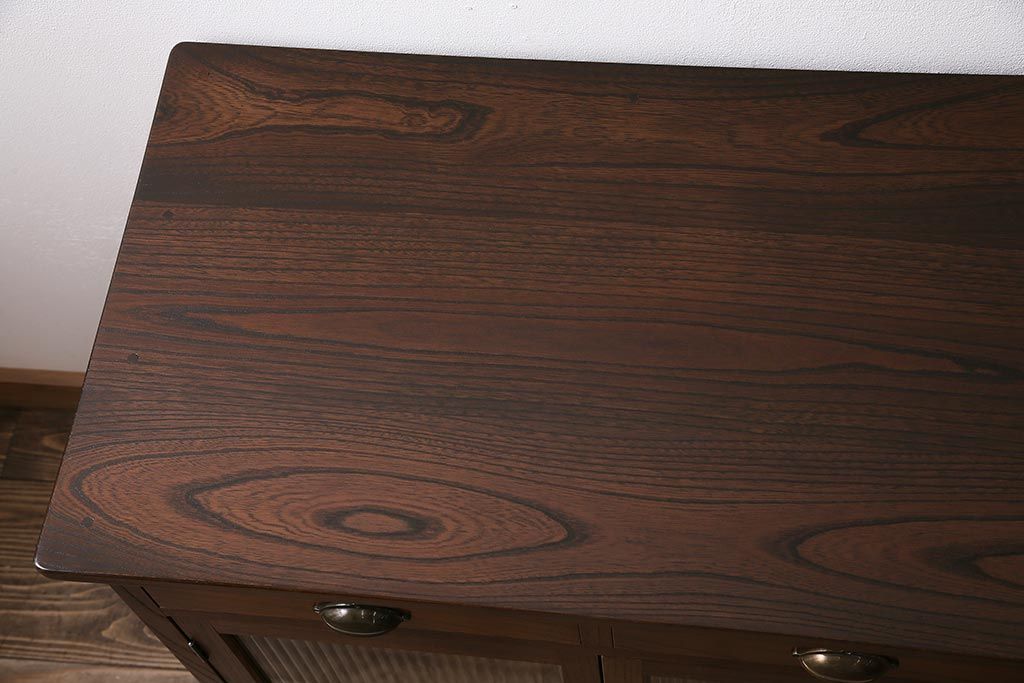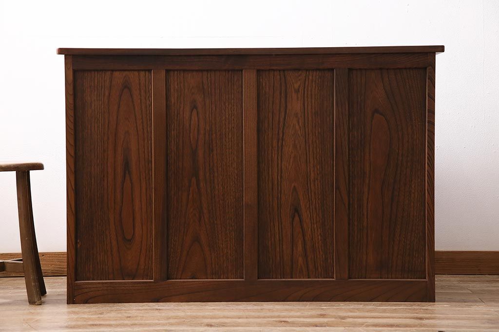 中古 総ケヤキ 無垢材 モールガラス 引き出し付きの木製カウンター(戸棚、サイドボード、リビングボード)(定価25万円)(R-045950)です。