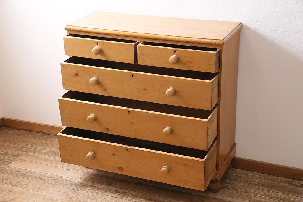アンティーク家具 フランスアンティーク カントリースタイルにおすすめなパイン材製のチェスト(引き出し)(R-045943)