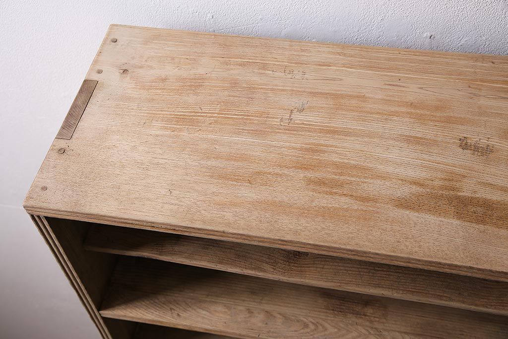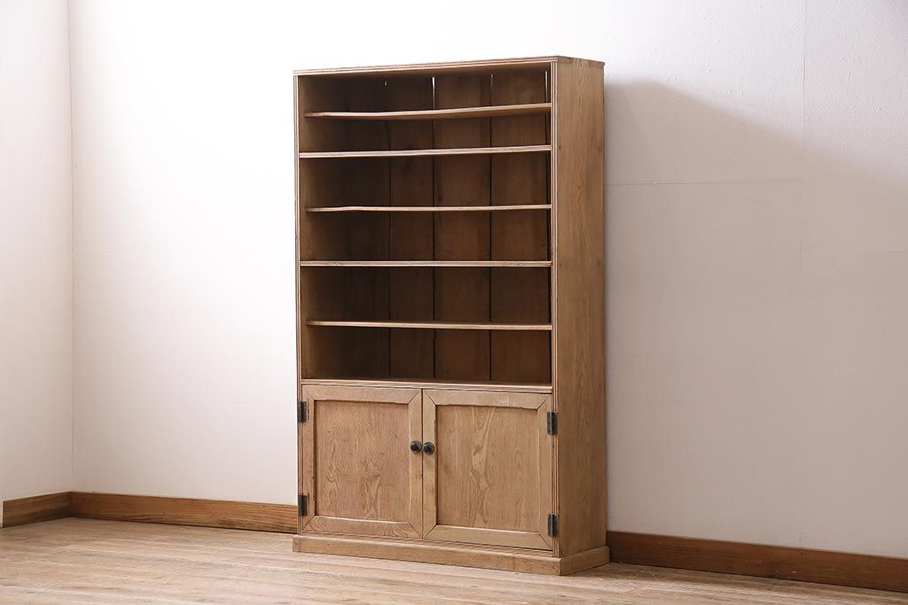 アンティーク家具 ストリップド(剥離) 戸棚付き 木味が魅力のタモ材製オープンラック(収納棚、シェルフ)(R-036922)です。