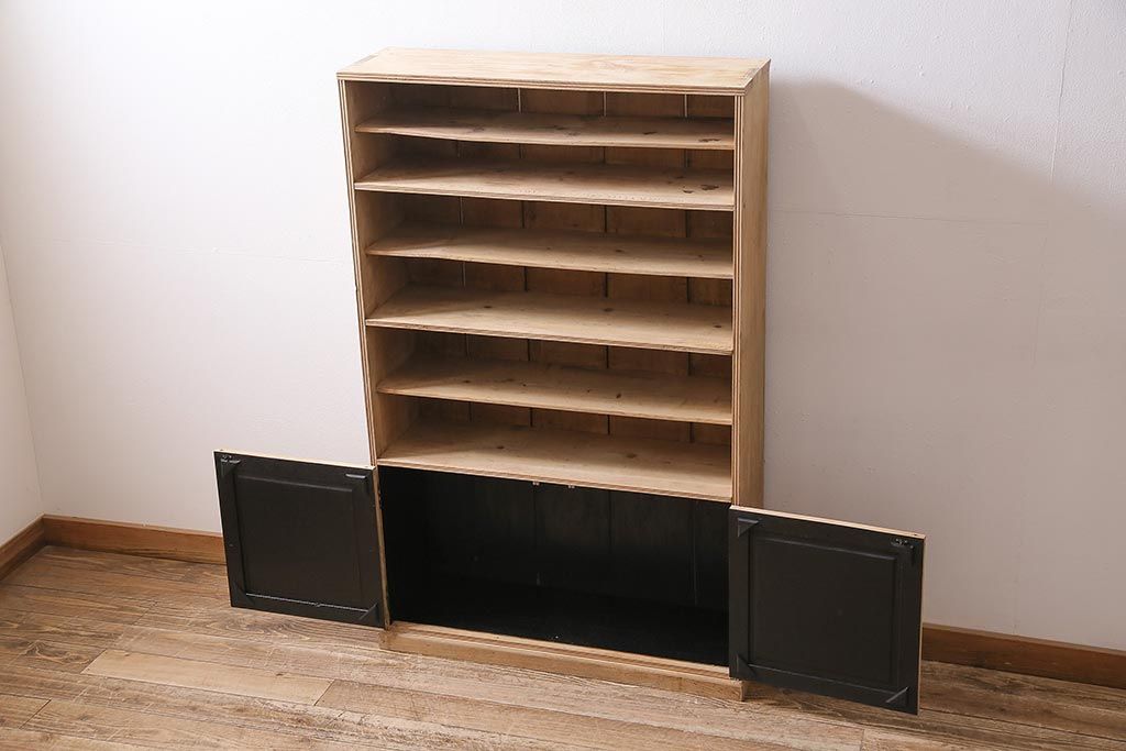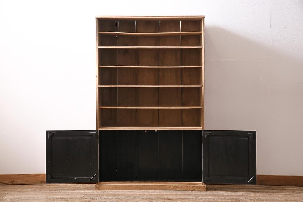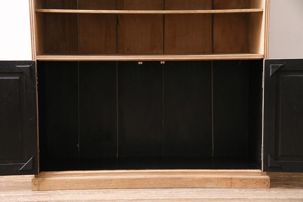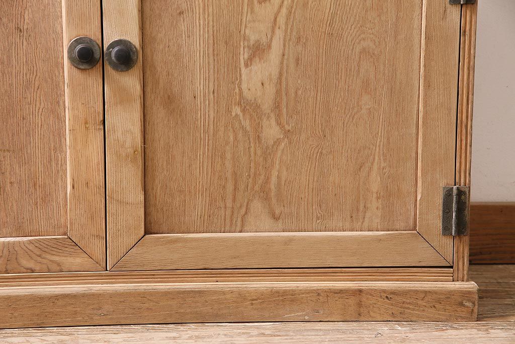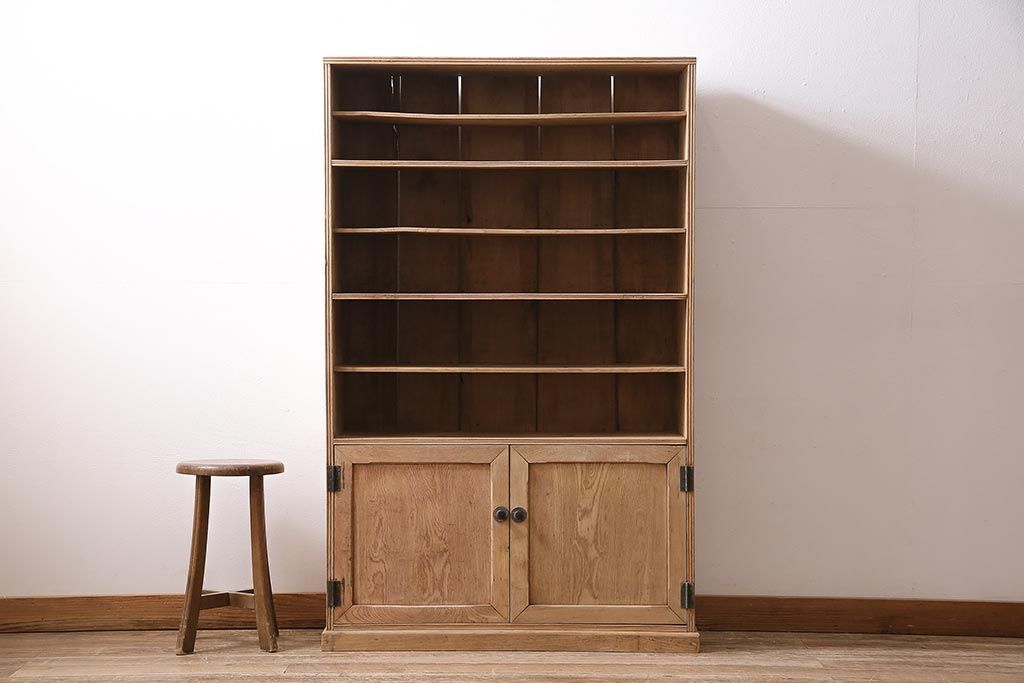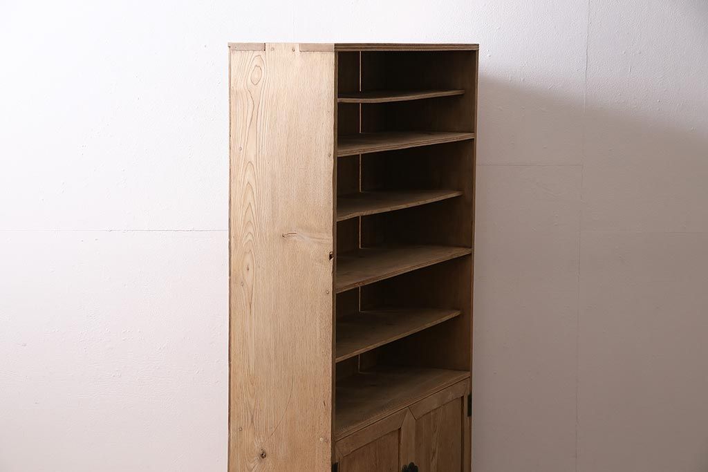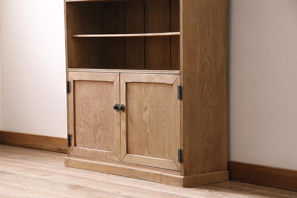 アンティーク家具 ストリップド(剥離) 戸棚付き 木味が魅力のタモ材製オープンラック(収納棚、シェルフ)(R-036922)