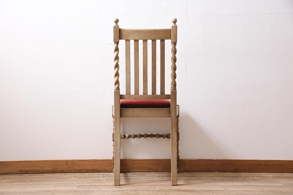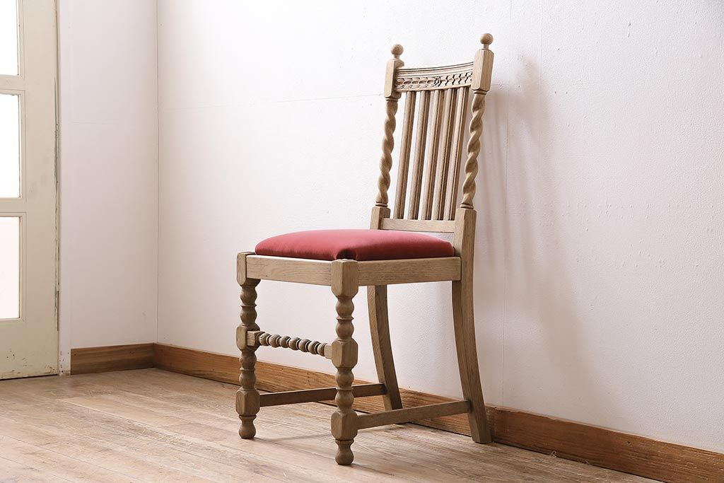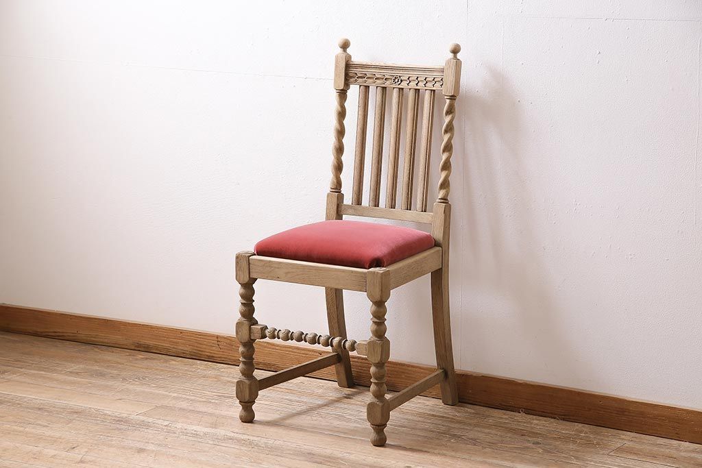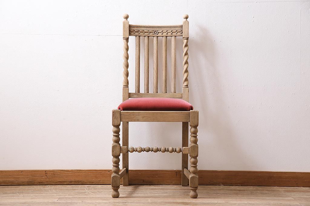 アンティーク家具 イギリスアンティーク ストリップド(剥離) オーク材 凝った意匠のダイニングチェア(椅子)(R-045944)