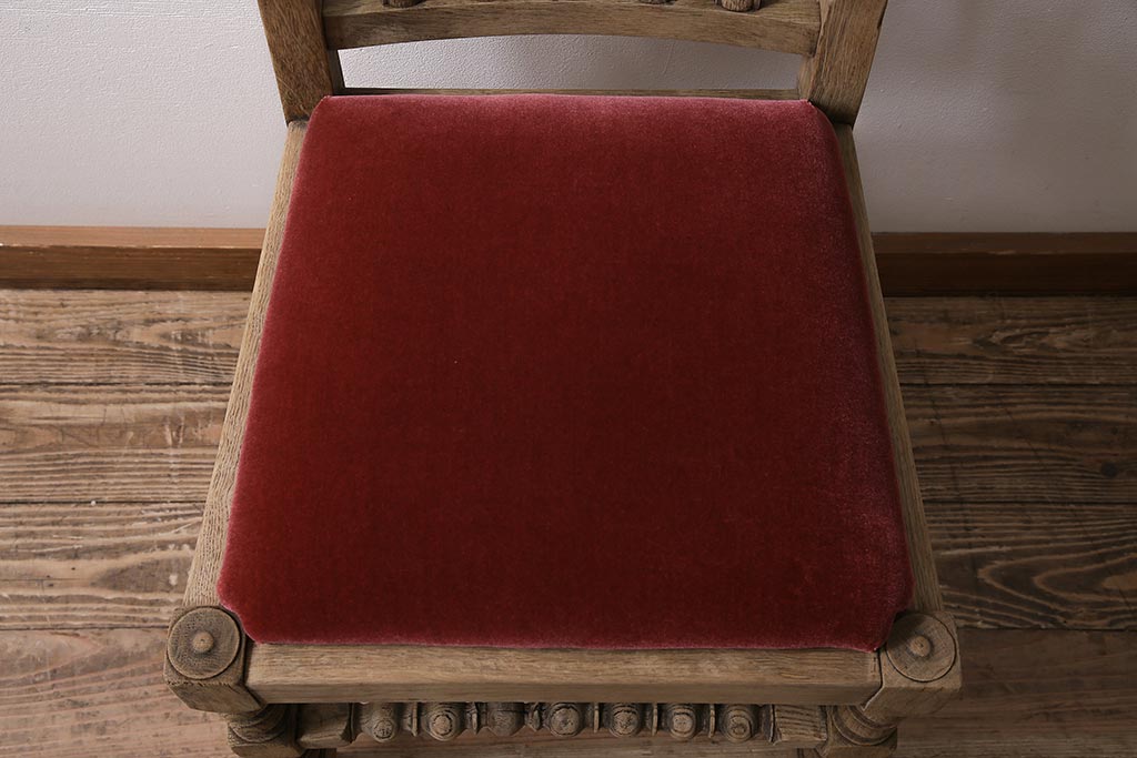 アンティーク家具 イギリスアンティーク ストリップド(剥離) オーク材 凝った意匠のダイニングチェア(椅子)(R-045944)です。