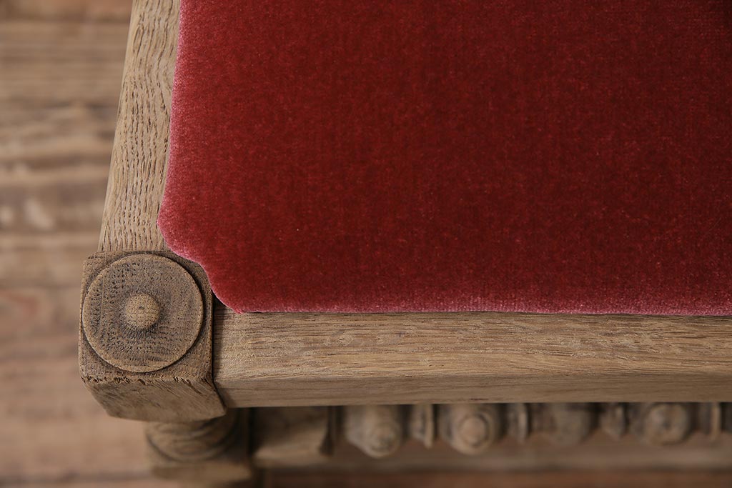 座面生地とクッション(座面内スポンジ)は当店にて張り替えておりますので、しっかりとしております。