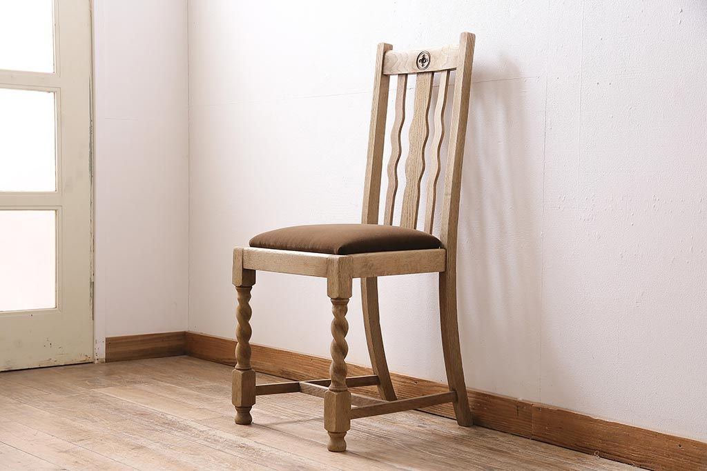 アンティーク家具 イギリスアンティーク ストリップド(剥離) オーク材 素朴な木味のダイニングチェア(椅子)(R-045948)