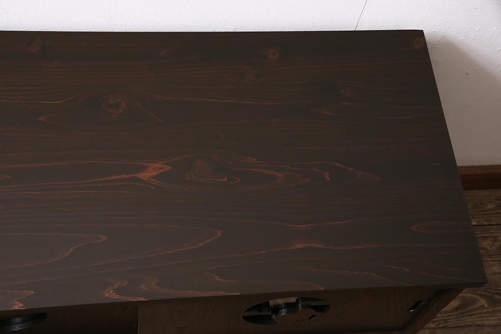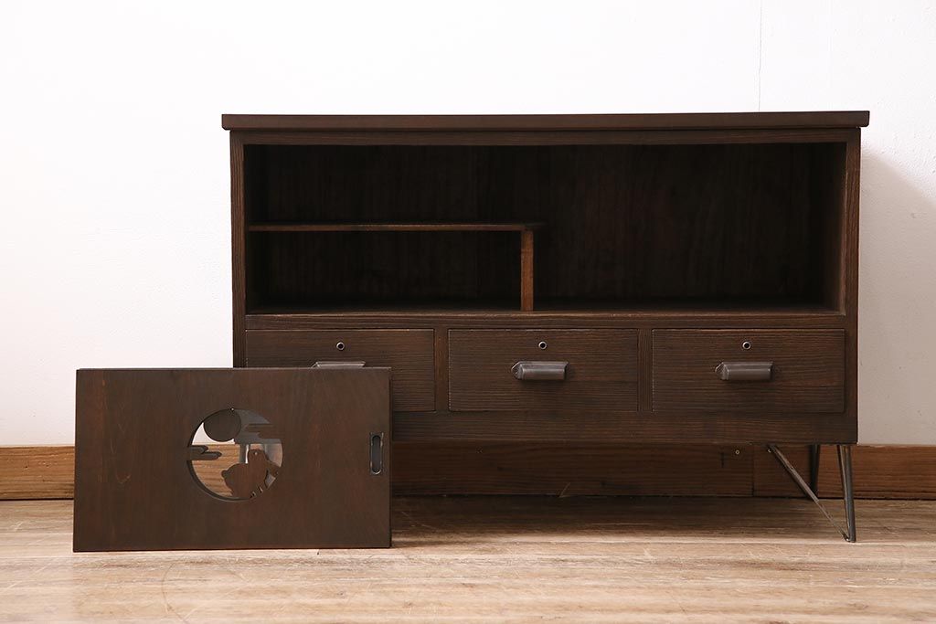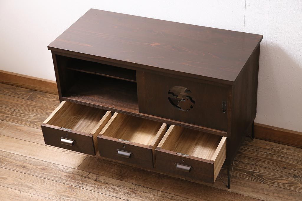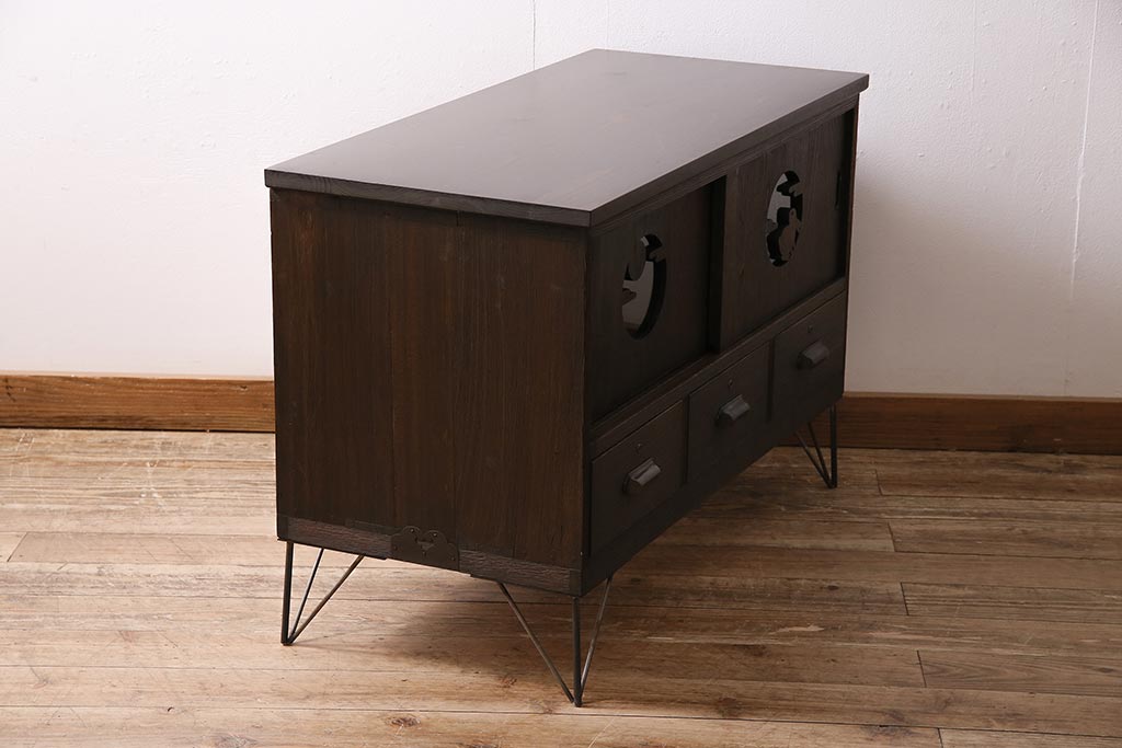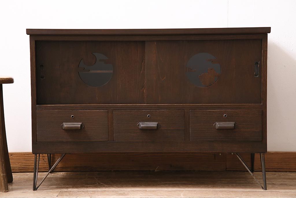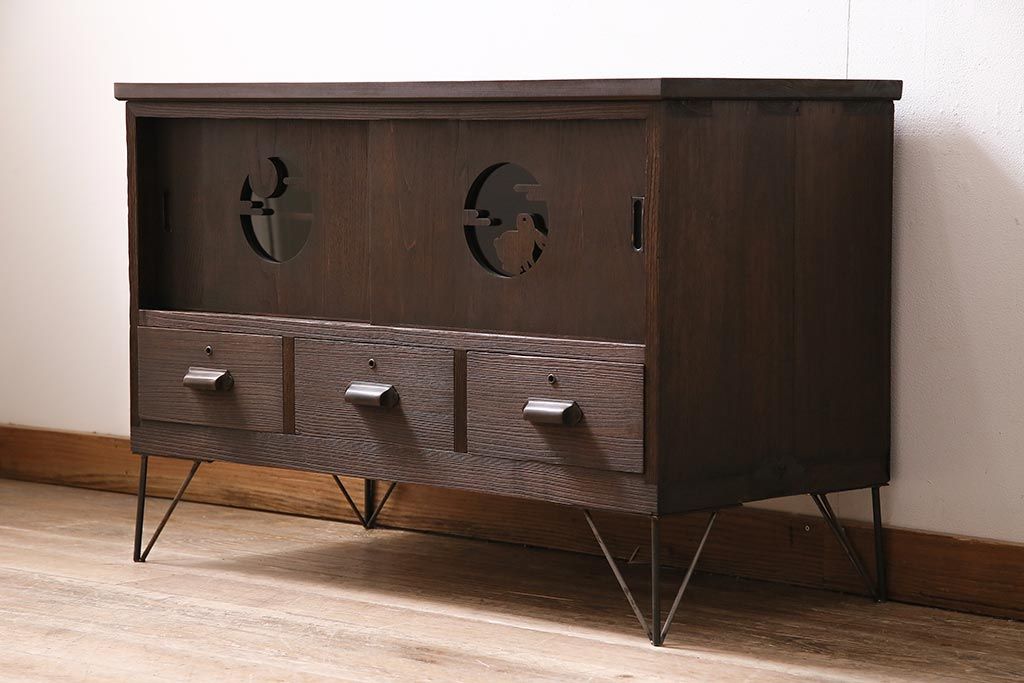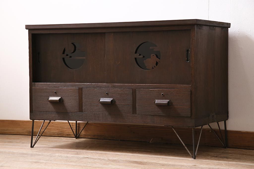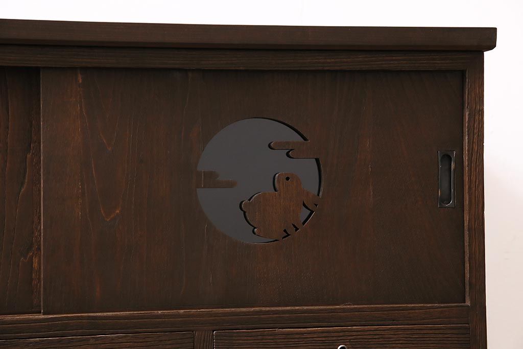 ラフジュ工房オリジナル 古箪笥リメイク 月見うさぎが愛らしい脚付きローボード(テレビ台、テレビボード)(R-045802)