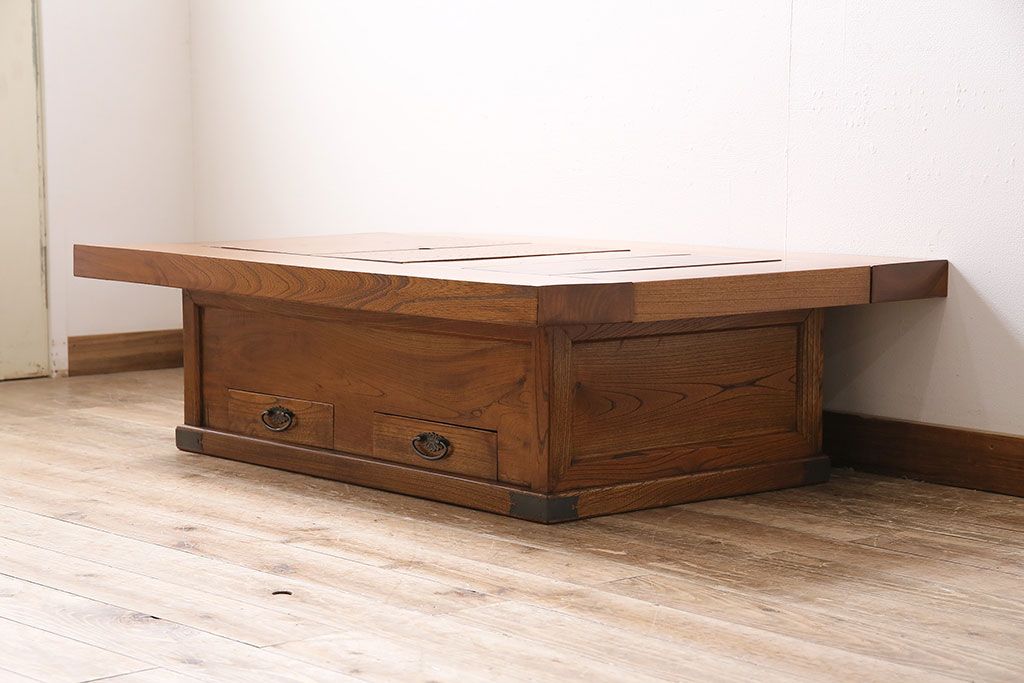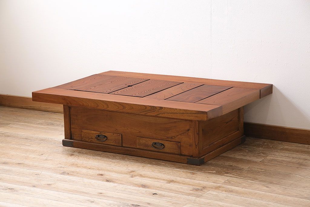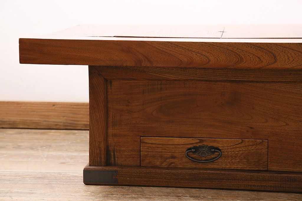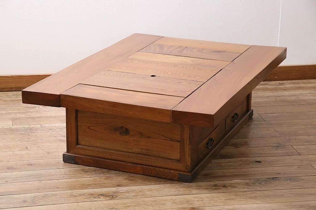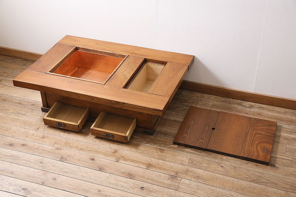 テーブル> 座卓 > 中古 民芸家具 ケヤキ材 和の風情を感じる関西火鉢(囲炉裏、長火鉢、座卓、ローテーブル)(R-046014)