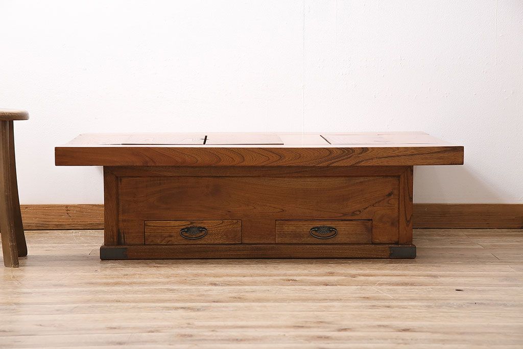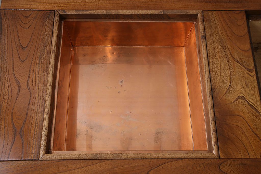 民芸家具 > 中古 民芸家具 ケヤキ材 和の風情を感じる関西火鉢(囲炉裏、長火鉢、座卓、ローテーブル)(R-046014)