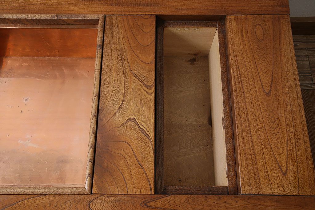 火鉢> 長火鉢 > 中古 民芸家具 ケヤキ材 和の風情を感じる関西火鉢(囲炉裏、長火鉢、座卓、ローテーブル)(R-046014)