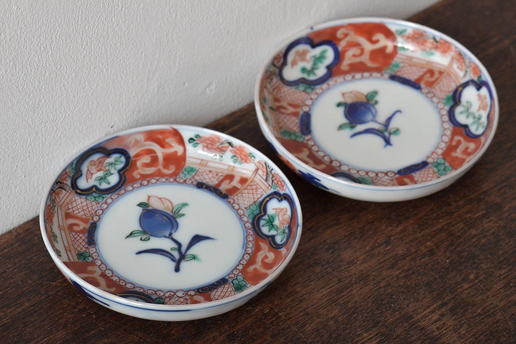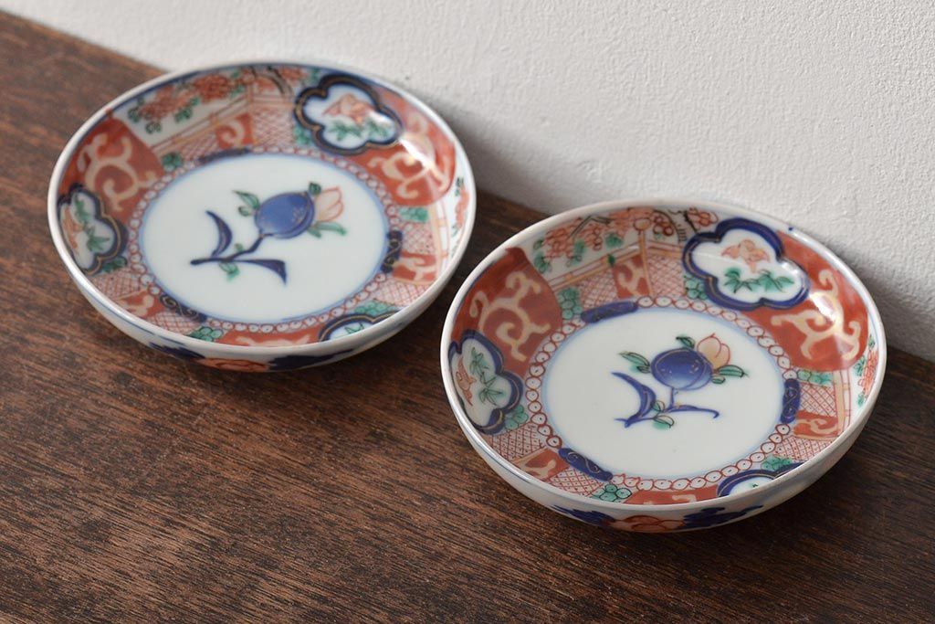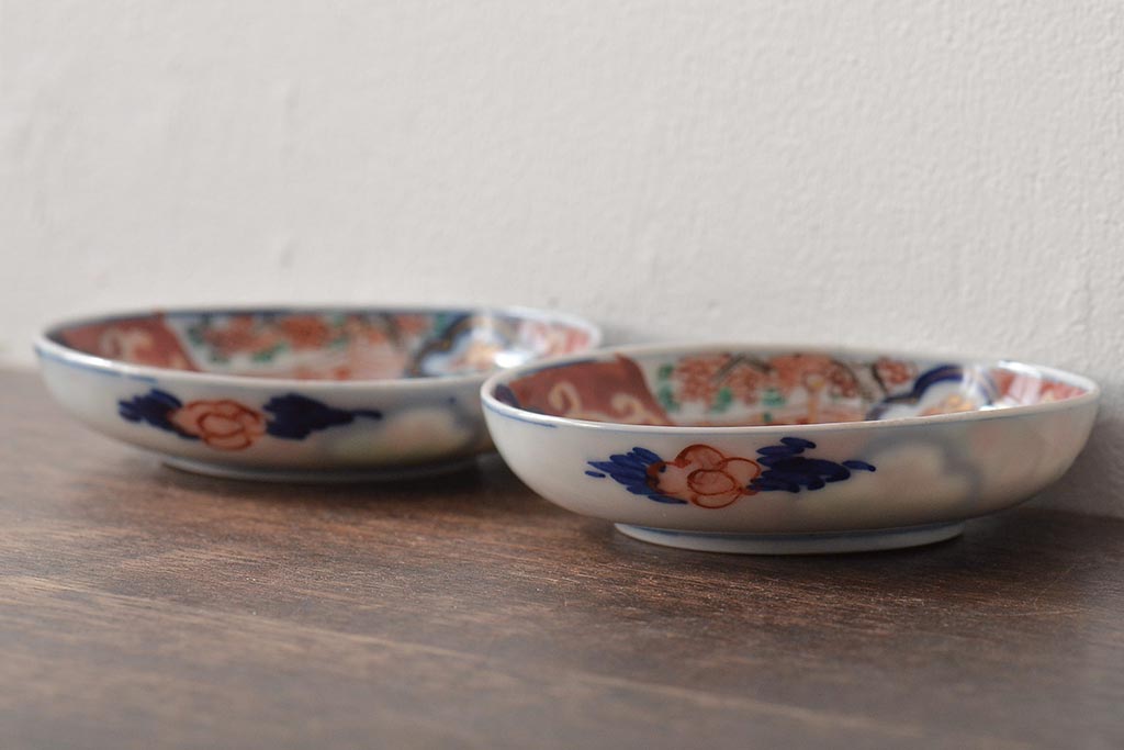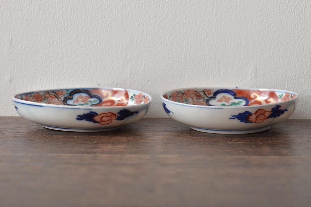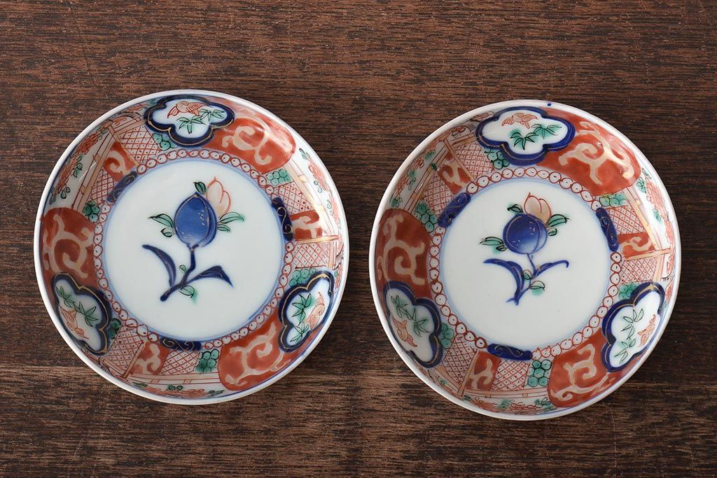 ラフジュ工房> 骨董・美術品> 骨董-陶磁器 > 江戸期 古伊万里 花鳥図 色絵小皿2枚セット(R-045937)