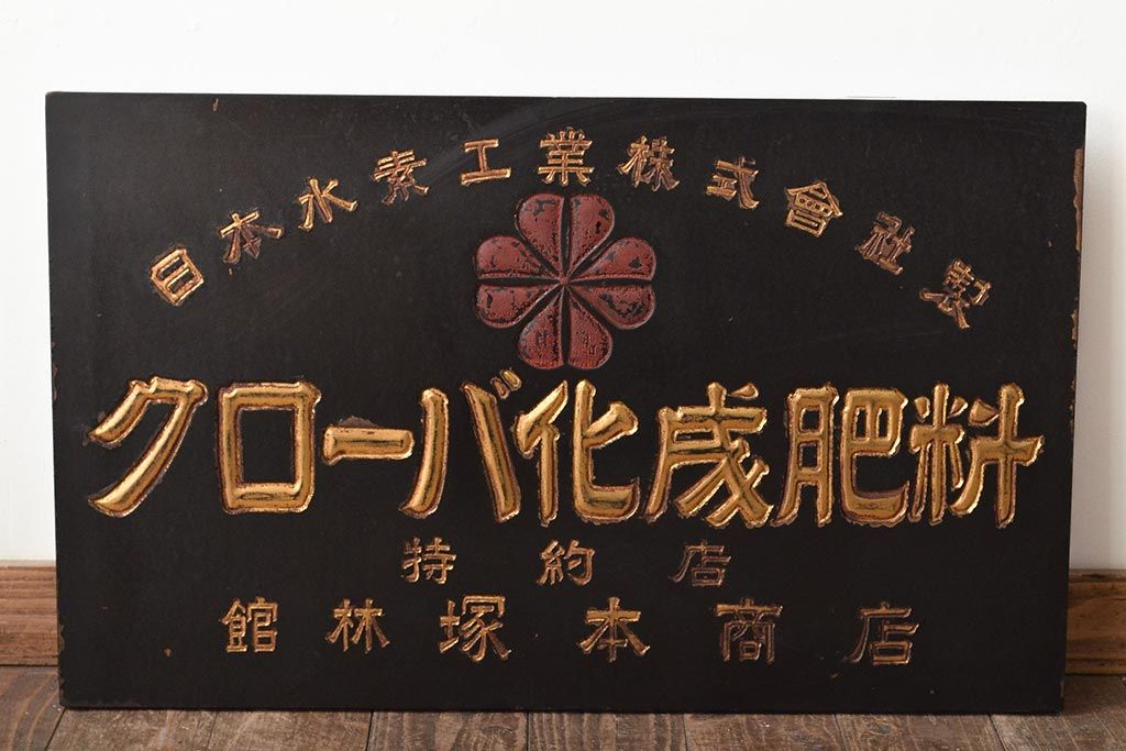 古い クローバ化成肥料 木製看板(日本水素工業)(R-045783)