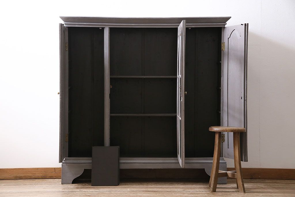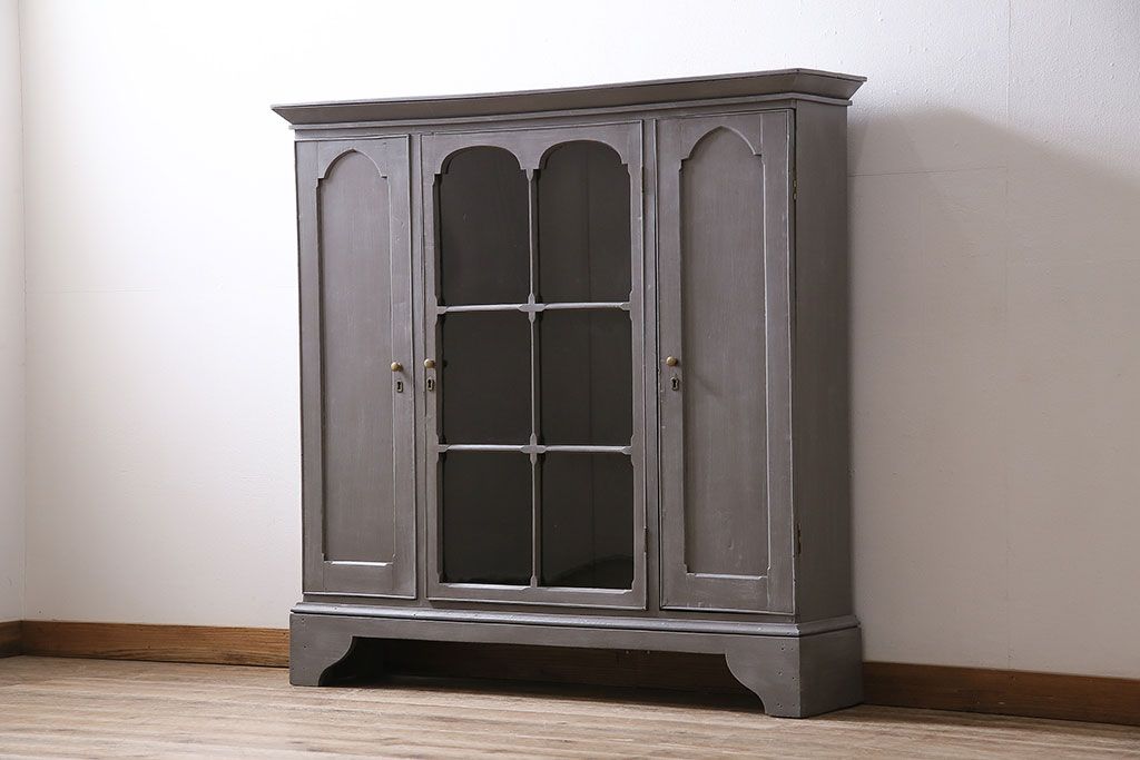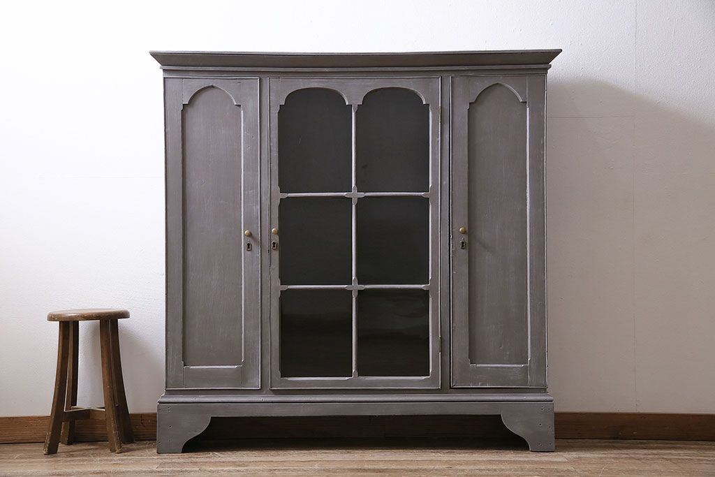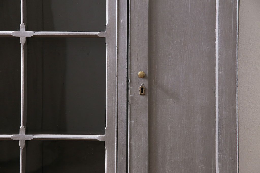 アンティーク家具 イギリスアンティーク 扉がおしゃれな薄型のペイントキャビネット(R-046007)
