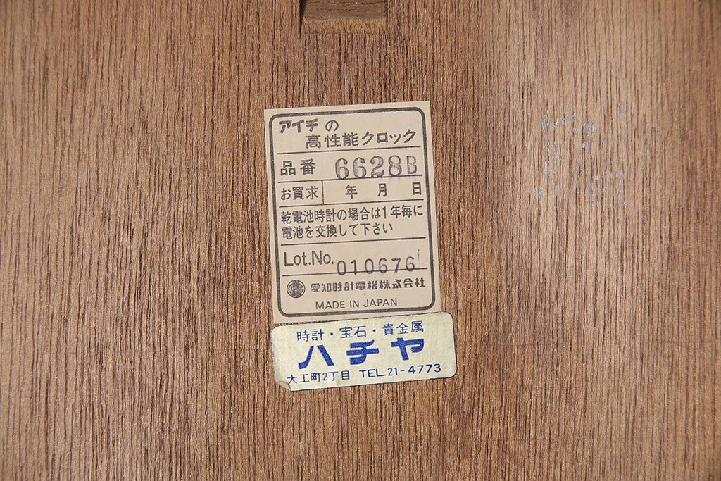 ヴィンテージ時計 昭和後期 愛知時計電機(アイチ、AICHI) special Eight 60DAY 電池式掛け時計(振り子時計、ビンテージ)(R-045923)