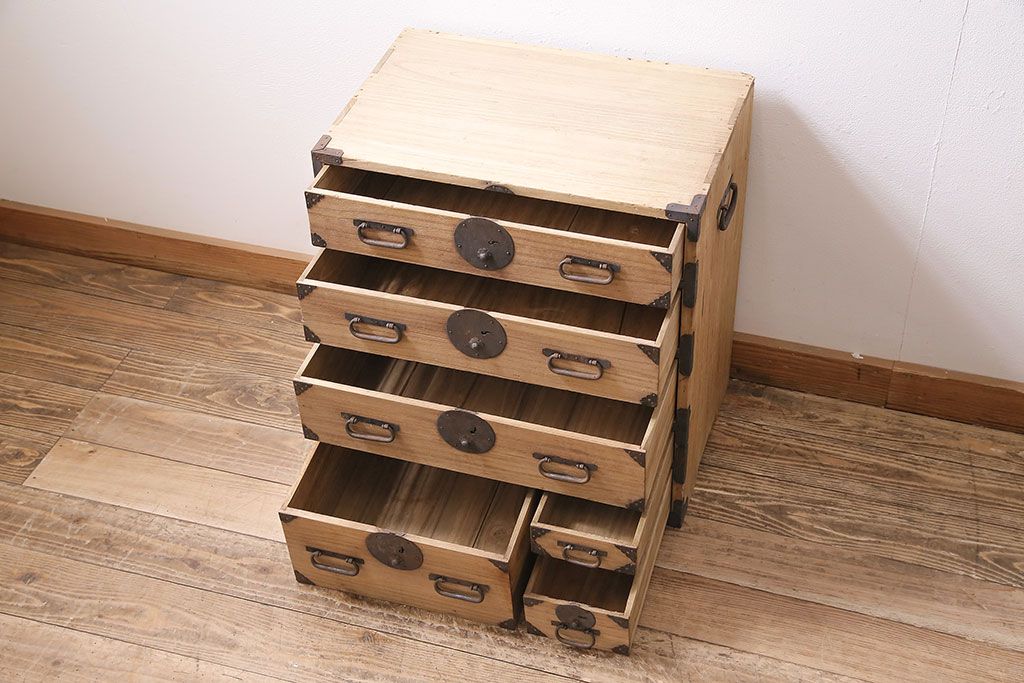 アンティーク家具 明治大正期 ストリップド(剥離) 総桐材 柔らかな木肌が魅力的な小箪笥(小物収納、引き出し)(R-046042)