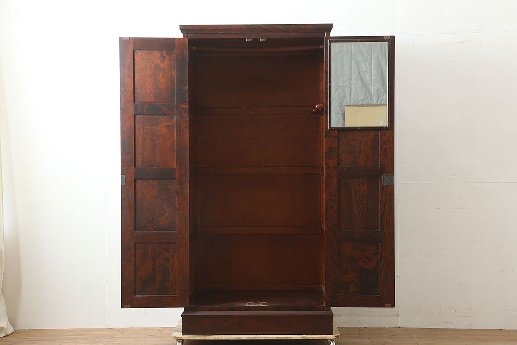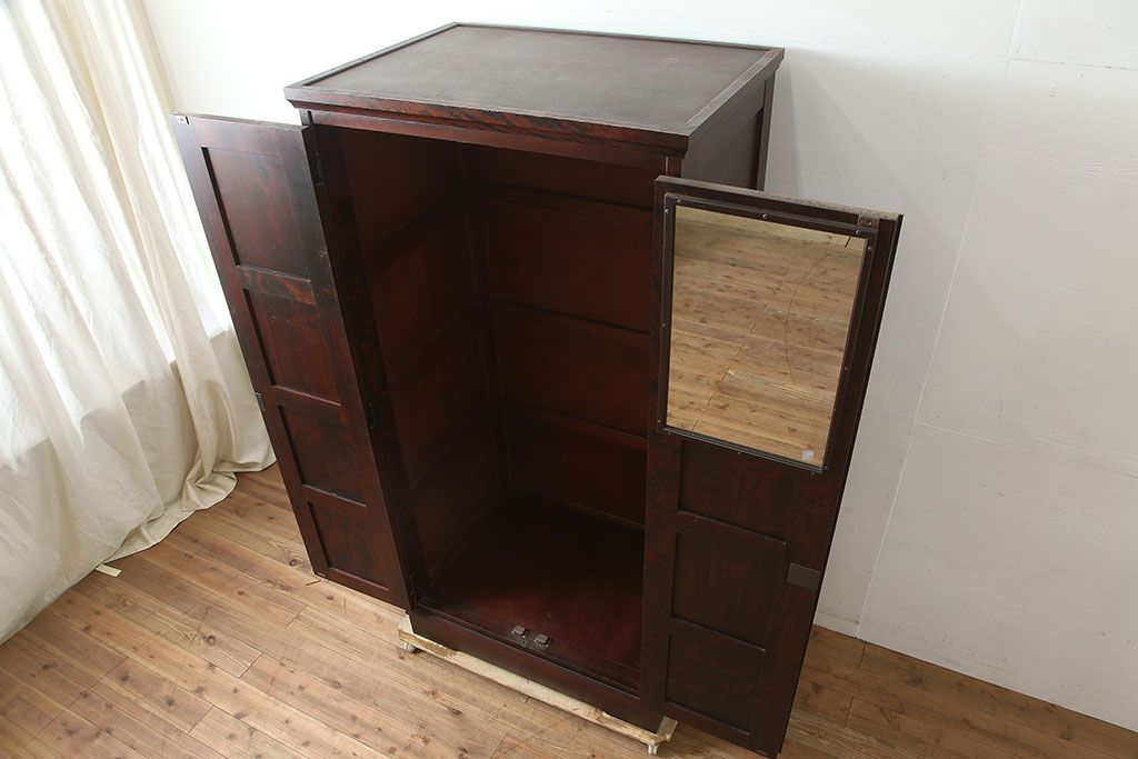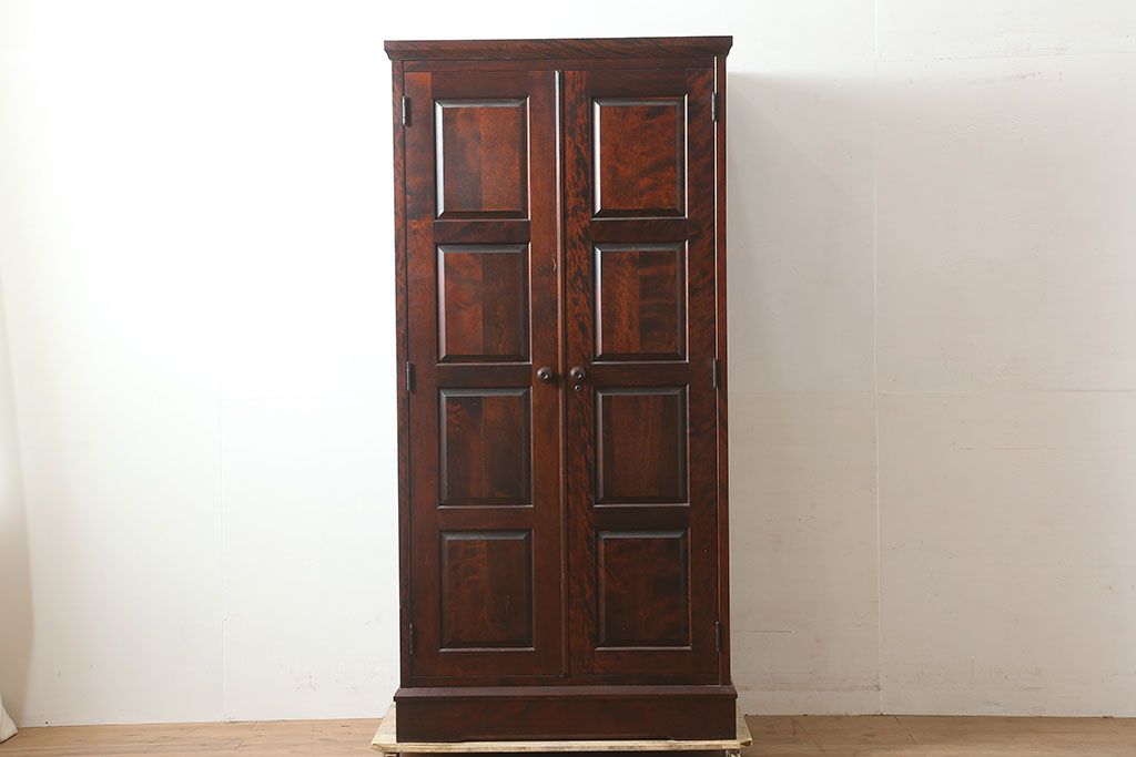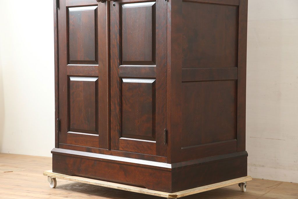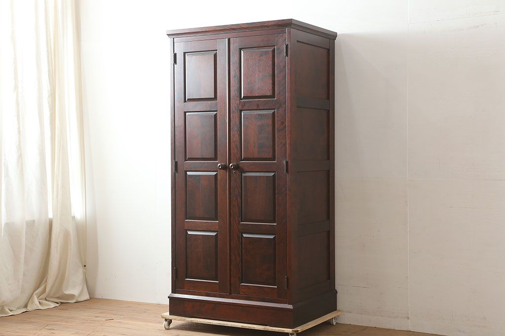 中古 北海道民芸家具 上品な雰囲気漂う濃い色味のワードローブ(R-046045)