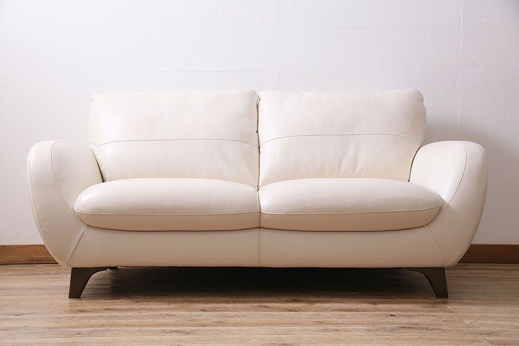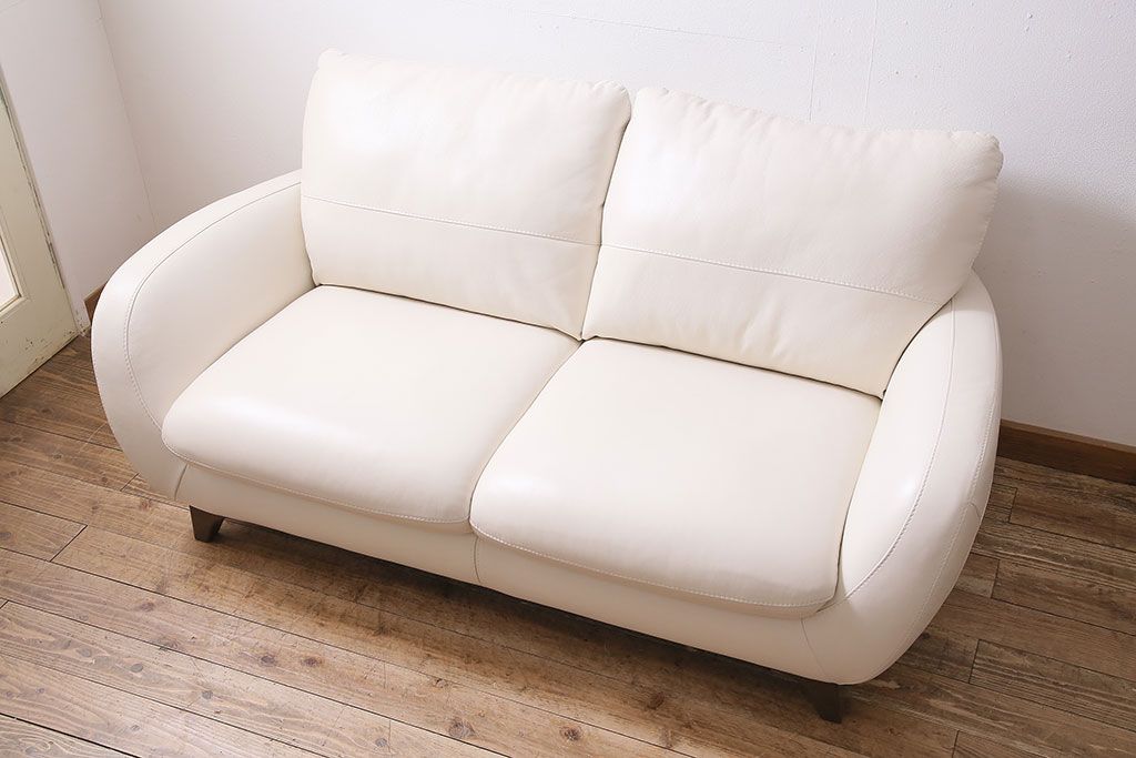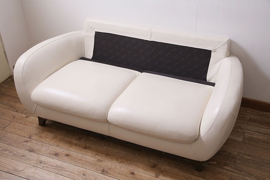 ソファ> 				2人掛けソファ				> 中古 NATUZZI(ナツッジ) Italsofa(イタルソファ) 本革 ミッドセンチュリーなイタリア製の2人掛けソファ(ラブソファ)(R-046030)