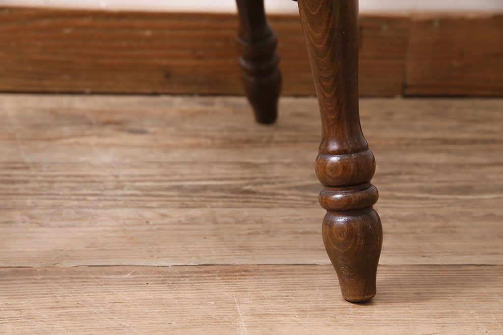背もたれや脚に施された挽物加工が特徴的な一品です。