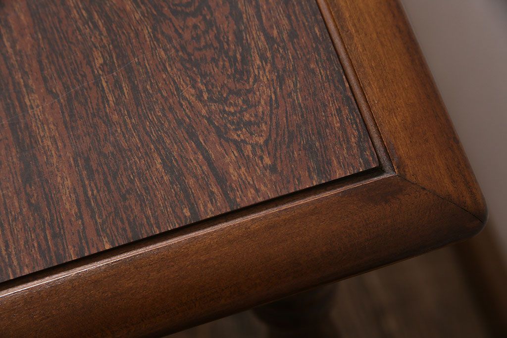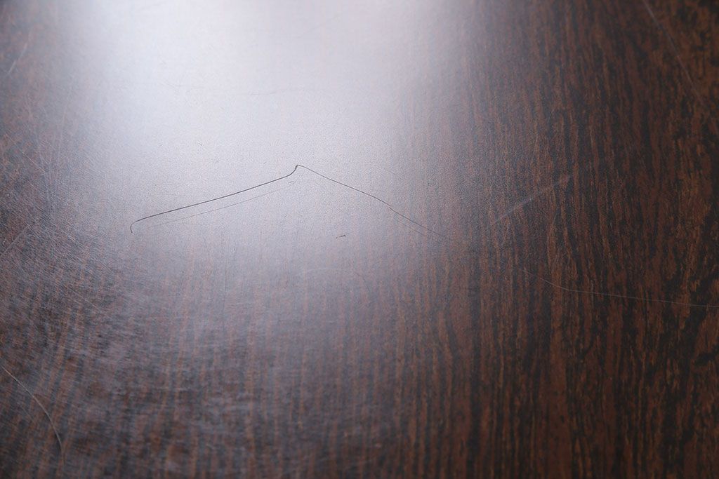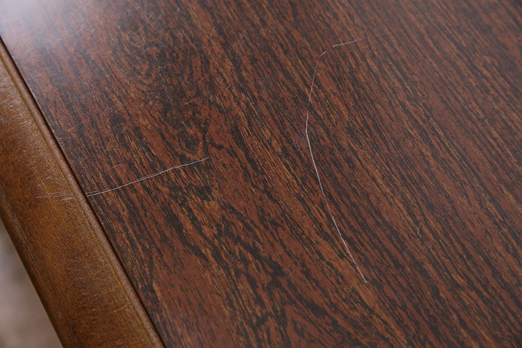 天板中央はデコラ板で作られており、当店でも修復出来ない細かな傷がございましたので、こちらのお値段でご提供させていただきます。ご購入の際には画像をご確認の上ご検討ください。