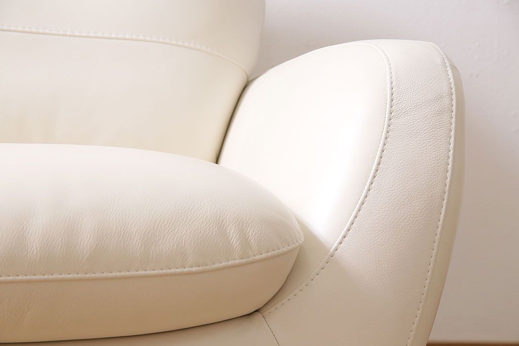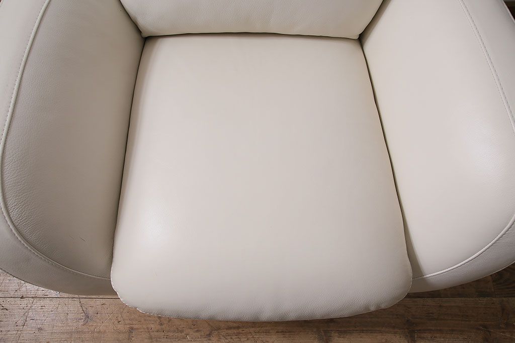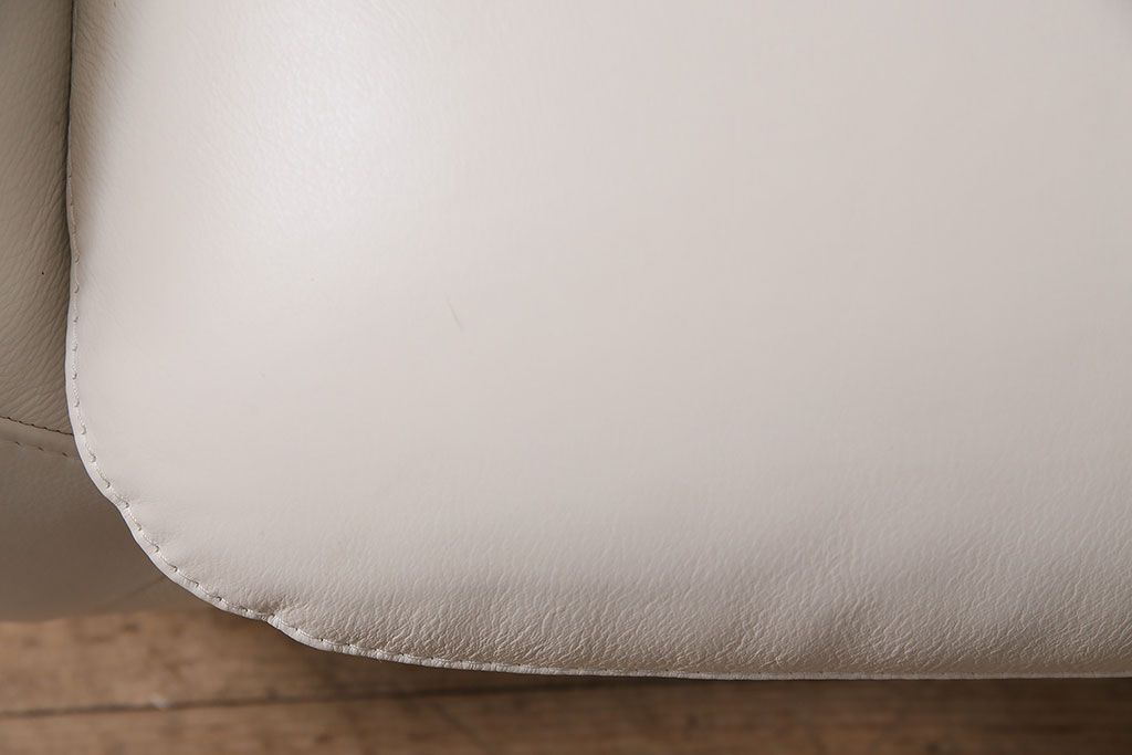 中古 NATUZZI(ナツッジ) Italsofa(イタルソファ) 本革 イタリアモダンな1Pソファ(アームチェア、一人掛け)(R-046024)です。 ヨーロッパで絶大な人気を誇る、 イタリアの一流家具メーカー NATUZZI(ナツッジ)の1Pソファです。 こちらは、Italsofa(イタルソファ)シリーズのお品で イタリアモダンのセンスに溢れた一品です。 丸みを帯びた可愛らしいフォルムですが、 それだけではなく、エレガントさも漂うデザインが 魅力となっております。 遊び心と気品を兼ね備えた 垢抜けた大人のお部屋作りにいかがでしょうか。 今回、R-046023(1Pソファ)、R-046025(オットマン)も同時販売しております。 【椅子の座り心地について】(身長161cmの女性スタッフの場合) クッションの硬さ:普通 座面の高さ:丁度いい 座面の広さ:広い アームの位置:丁度いい 背もたれの位置:背中全体   座面までの高さは座っていない状態の一番高い部分を測定しています。 弊社工房にて専門の職人が品質チェック・補修を行い、強度を高めていますので、ぐらつきもなく、安心してお使いいただけます。 ファブリックはオリジナルのままです。 多少の使用感、汚れ等ありますので、ご理解の上、画像を参考にお願いいたします。 大きなダメージはなく、中古品としてはとても状態の良いきれいなお品です。 使用上問題のあるダメージはありません。 ■アームまでの高さ 550mm ■座面までの高さ 410mm ■重量 約30kg