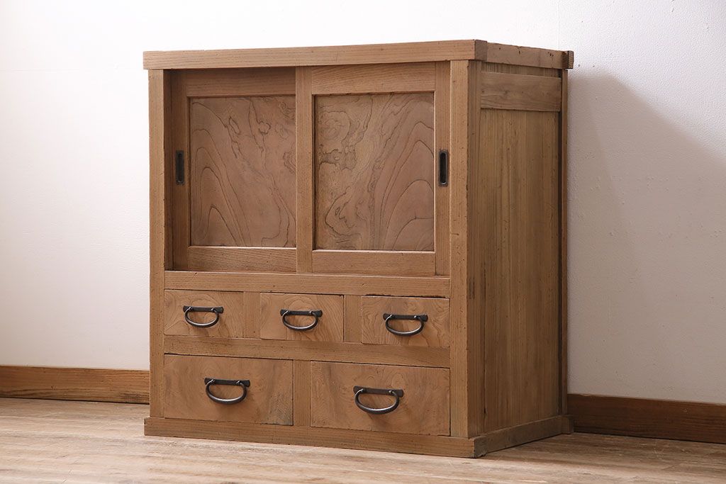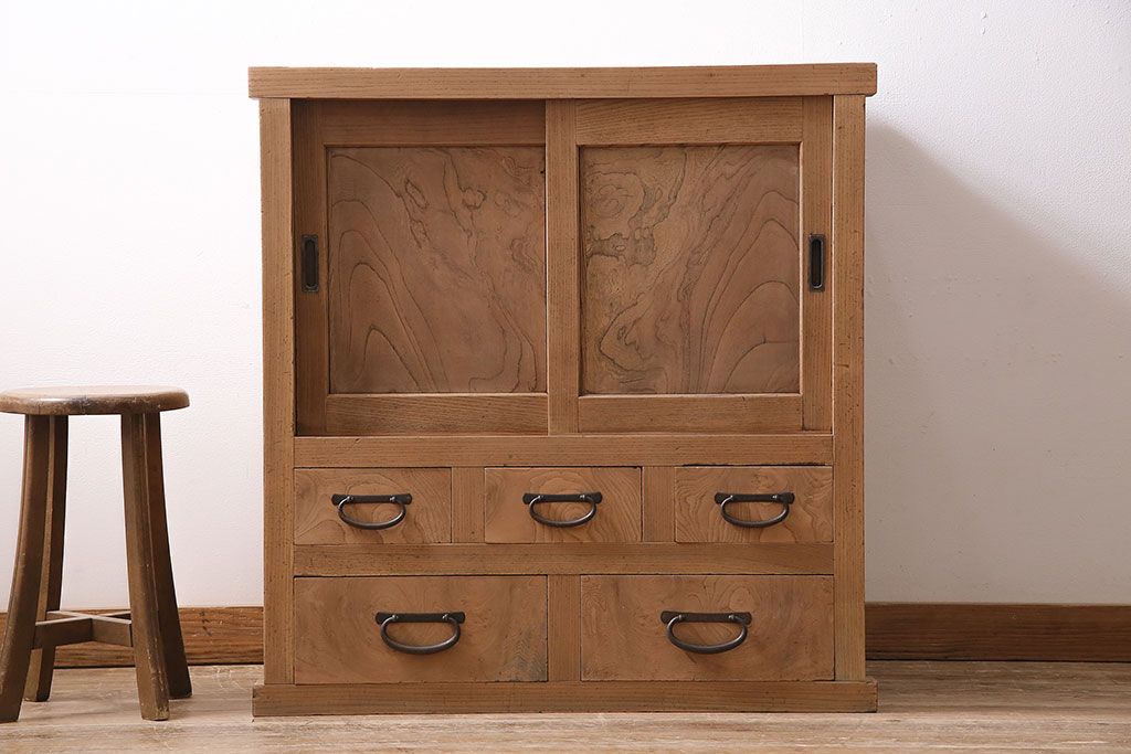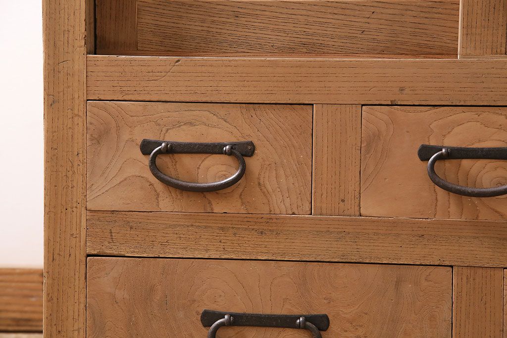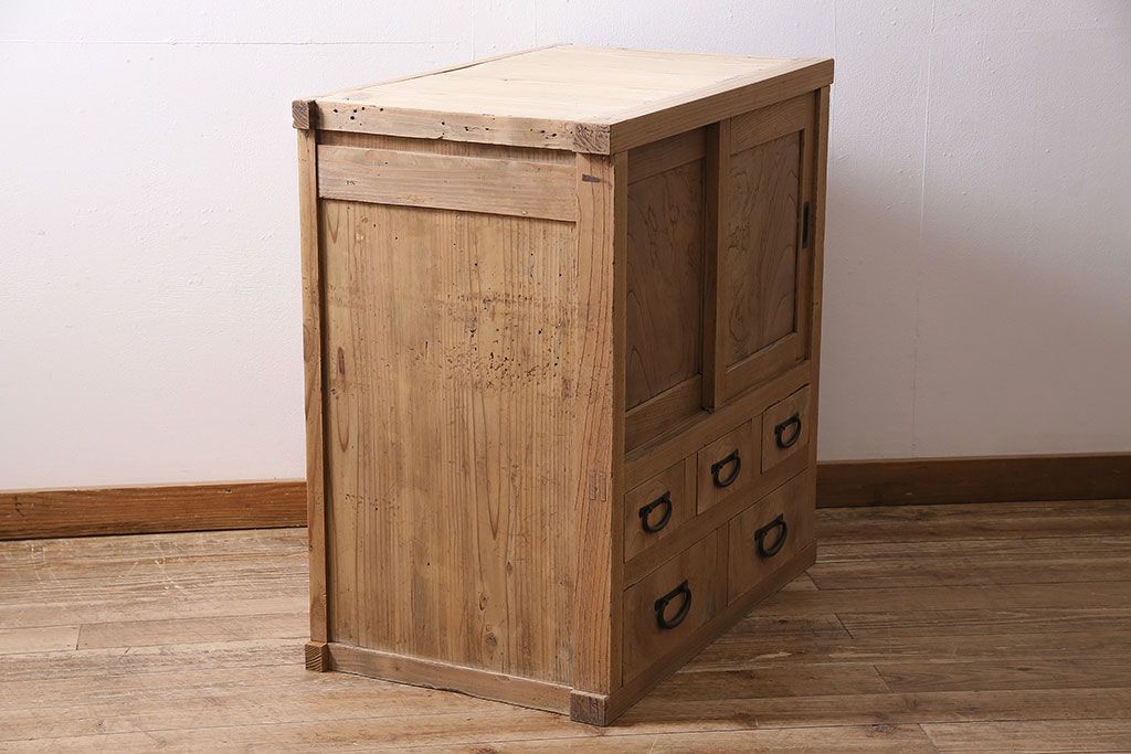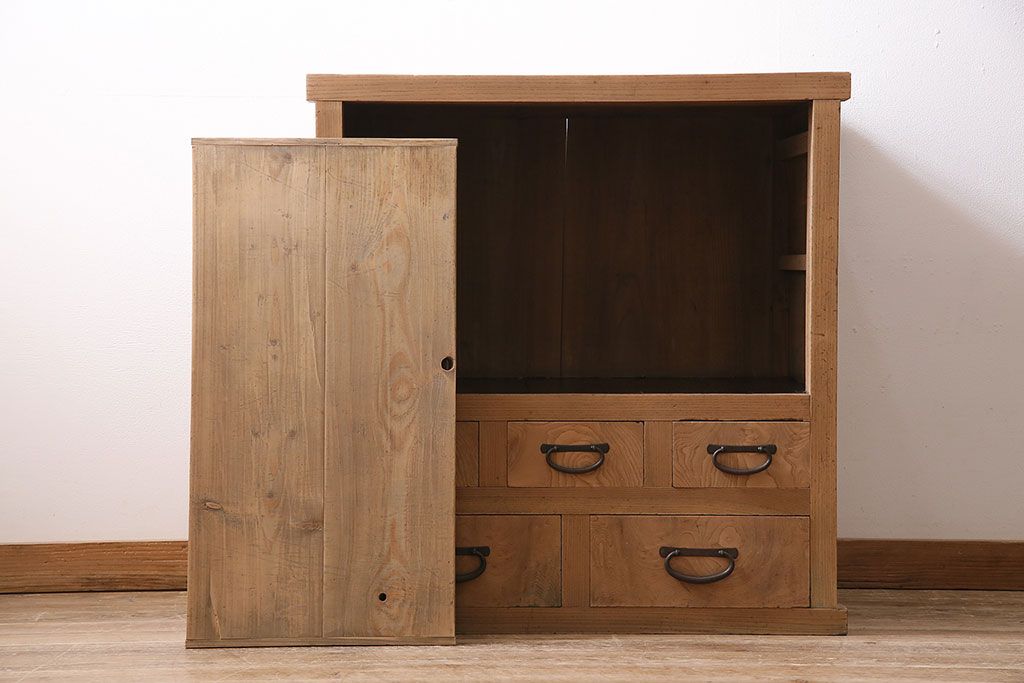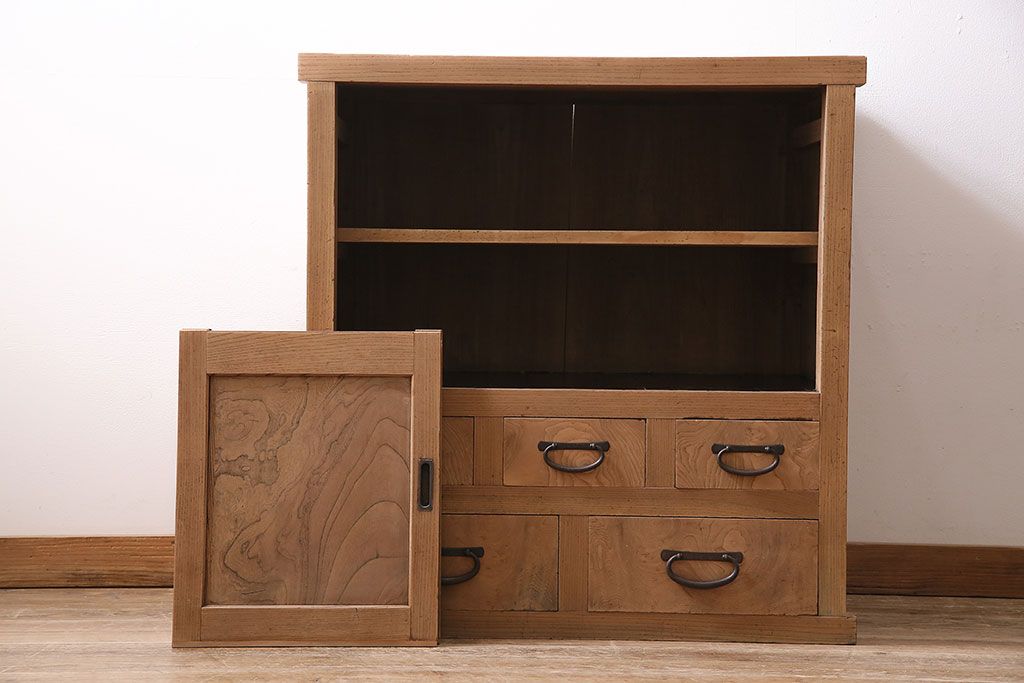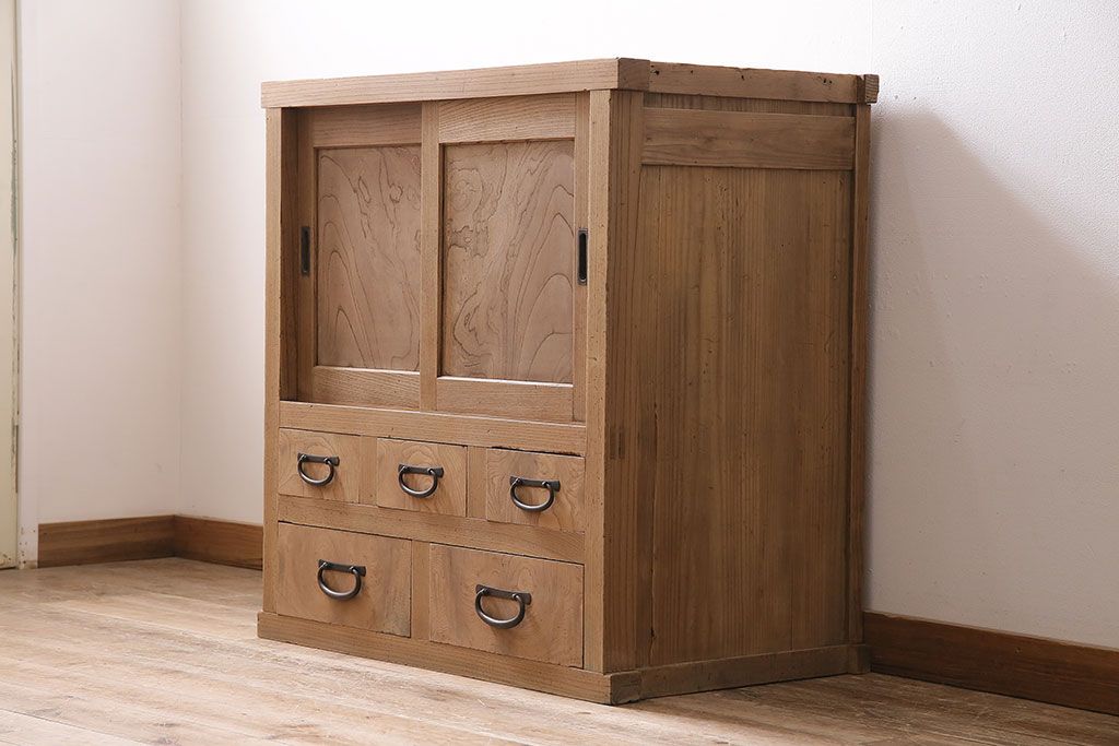 アンティーク家具 明治大正期 ストリップド(剥離) 前面ケヤキ材 年月を重ねた木肌が味わい深い戸棚(収納棚、和タンス)(R-046076)