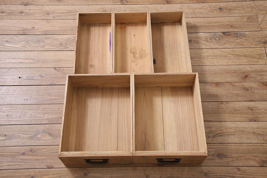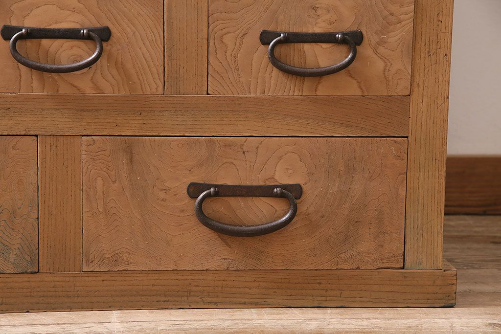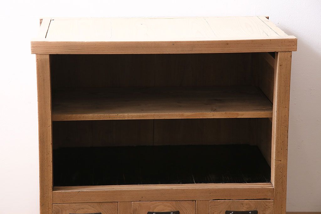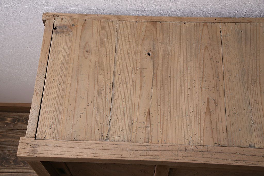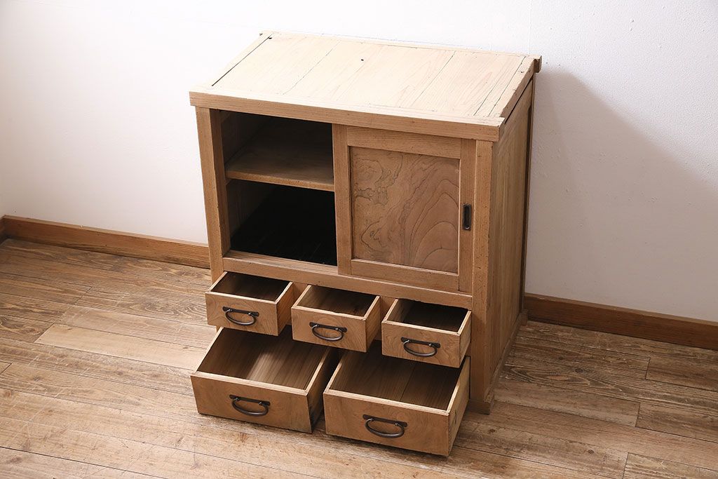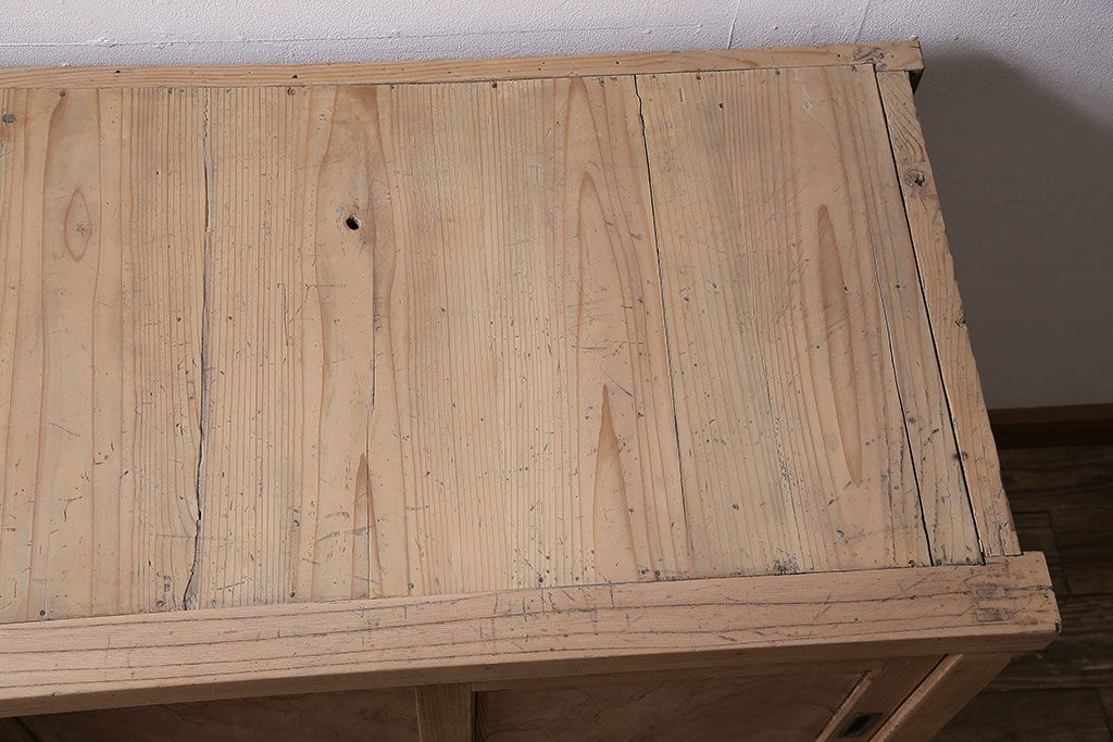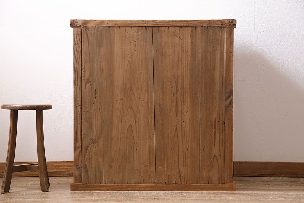 アンティーク家具 明治大正期 ストリップド(剥離) 前面ケヤキ材 年月を重ねた木肌が味わい深い戸棚(収納棚、和タンス)(R-046076)