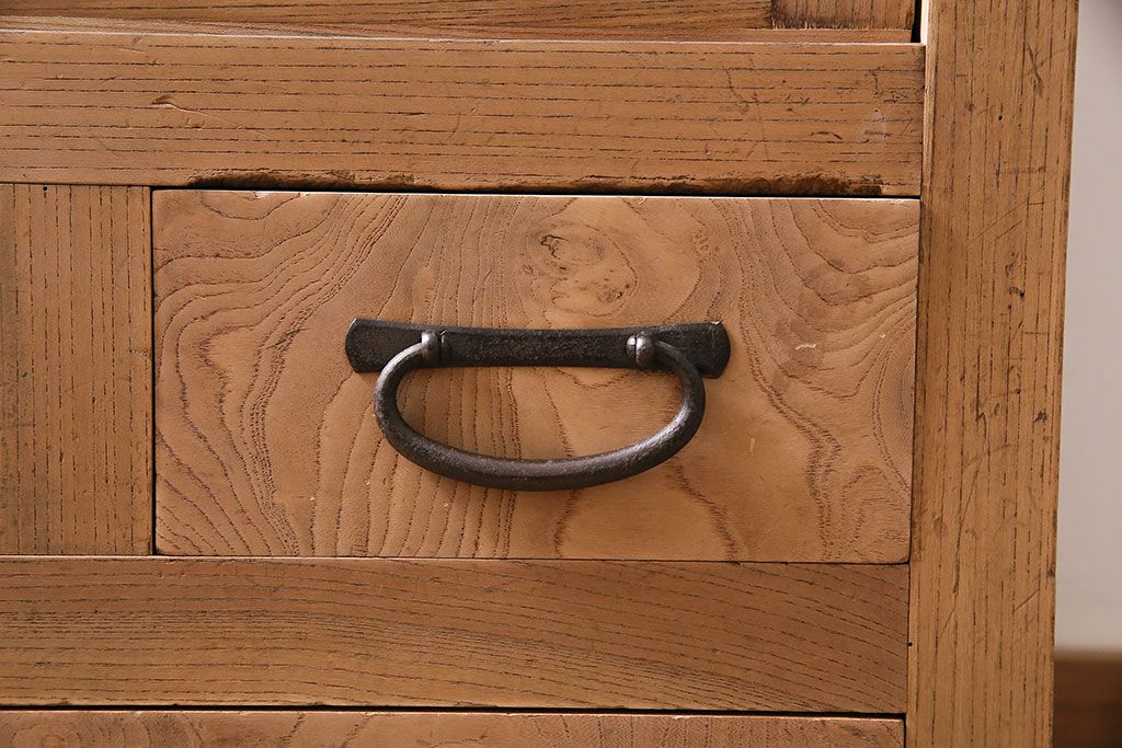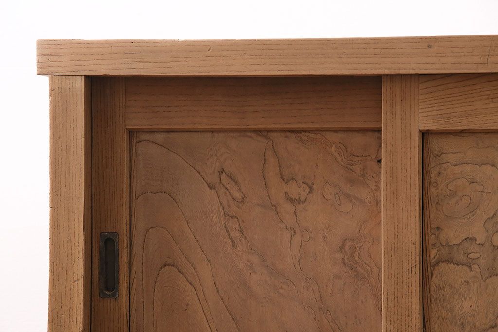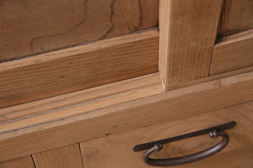 ストリップド(剥離)家具 > アンティーク家具 明治大正期 ストリップド(剥離) 前面ケヤキ材 年月を重ねた木肌が味わい深い戸棚(収納棚、和タンス)(R-046076)