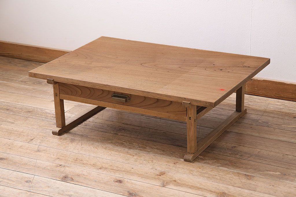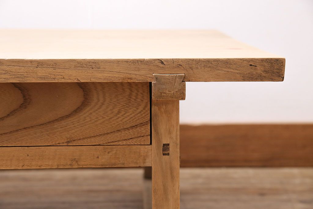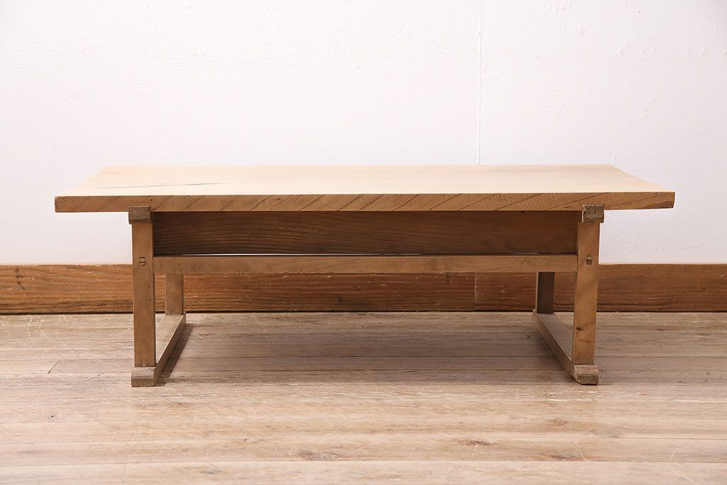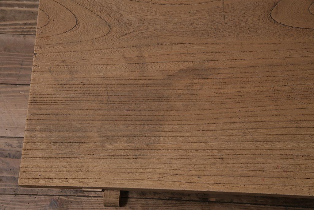 ストリップド(剥離)家具 > アンティーク家具 大正期 ストリップド(剥離) 天板ケヤキ一枚板 素朴な雰囲気のシンプルな文机(ローテーブル、センターテーブル)(R-046062)