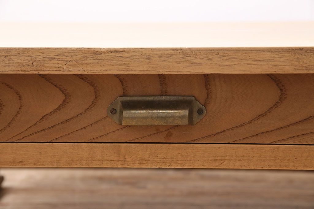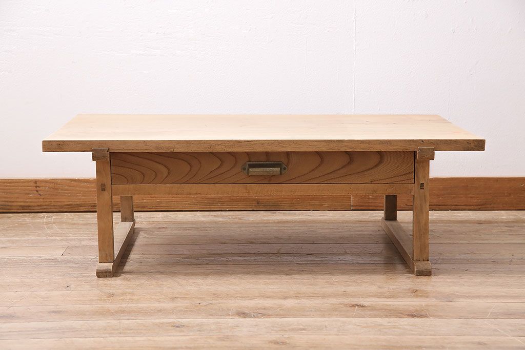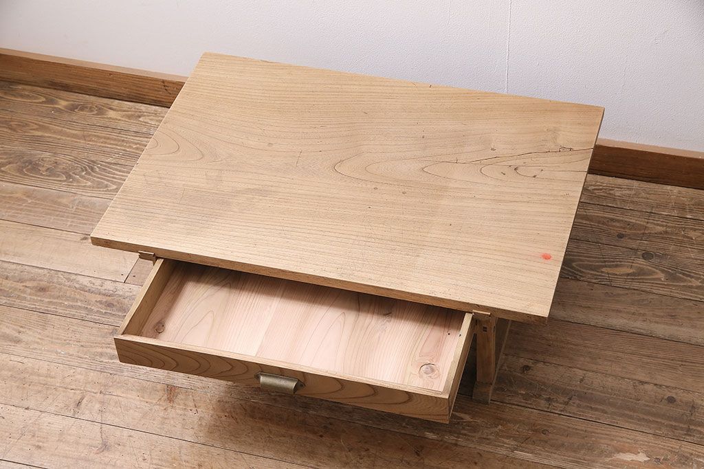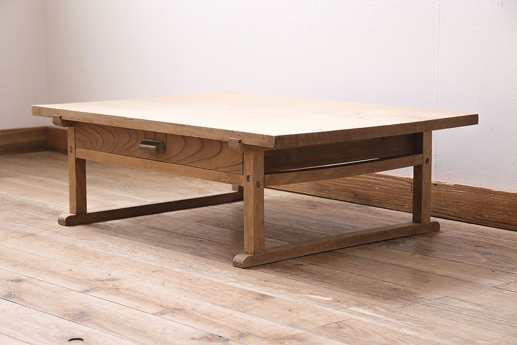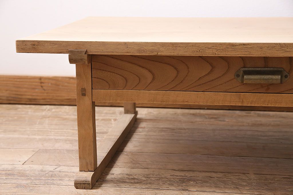 ストリップド(剥離)家具 > アンティーク家具 大正期 ストリップド(剥離) 天板ケヤキ一枚板 素朴な雰囲気のシンプルな文机(ローテーブル、センターテーブル)(R-046062)