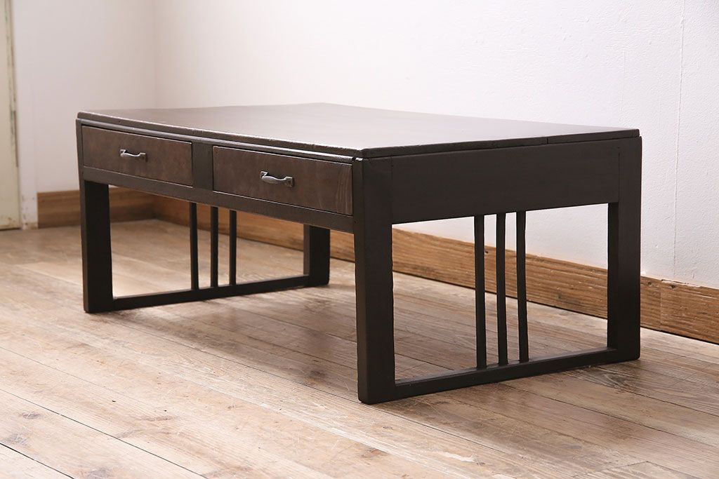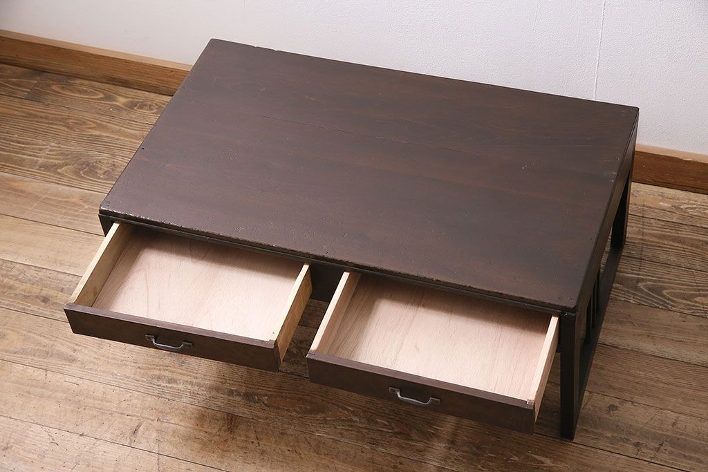アンティーク家具 昭和初期 深みのある木味が魅力のレトロな文机(ローテーブル、センターテーブル)(R-046063)