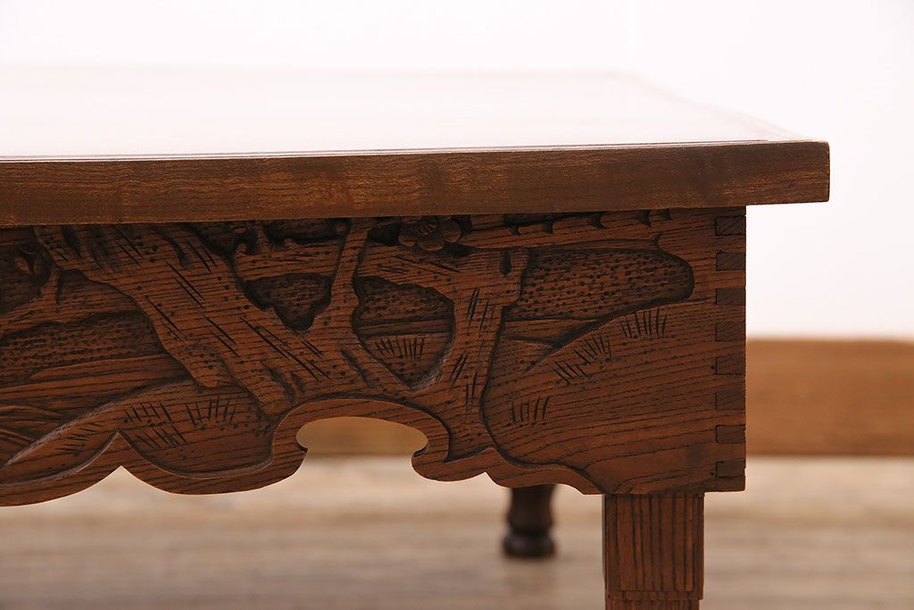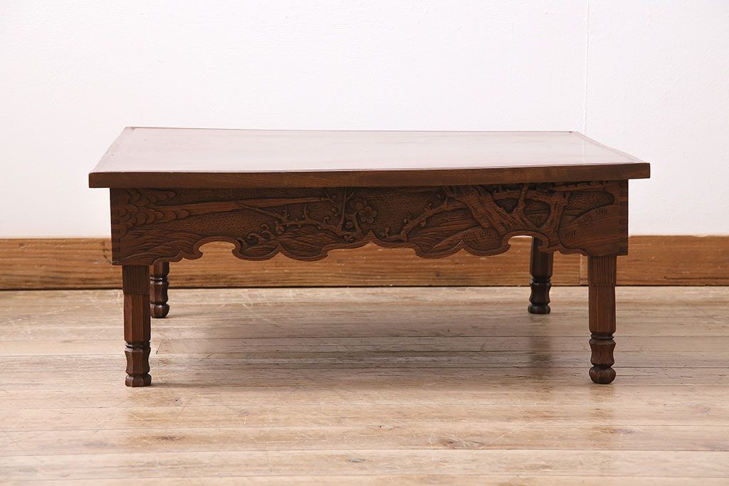 アンティーク家具 明治大正期 工芸家具 希少!梅の彫刻が見事なちゃぶ台(ローテーブル、座卓、折りたたみ)(R-046078)