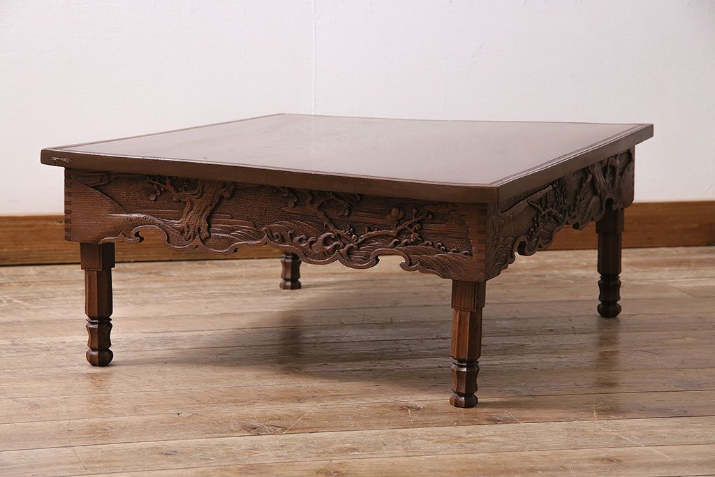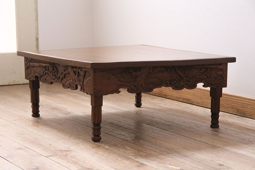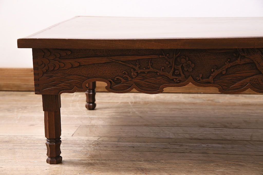 アンティーク家具 明治大正期 工芸家具 希少!梅の彫刻が見事なちゃぶ台(ローテーブル、座卓、折りたたみ)(R-046078)です。