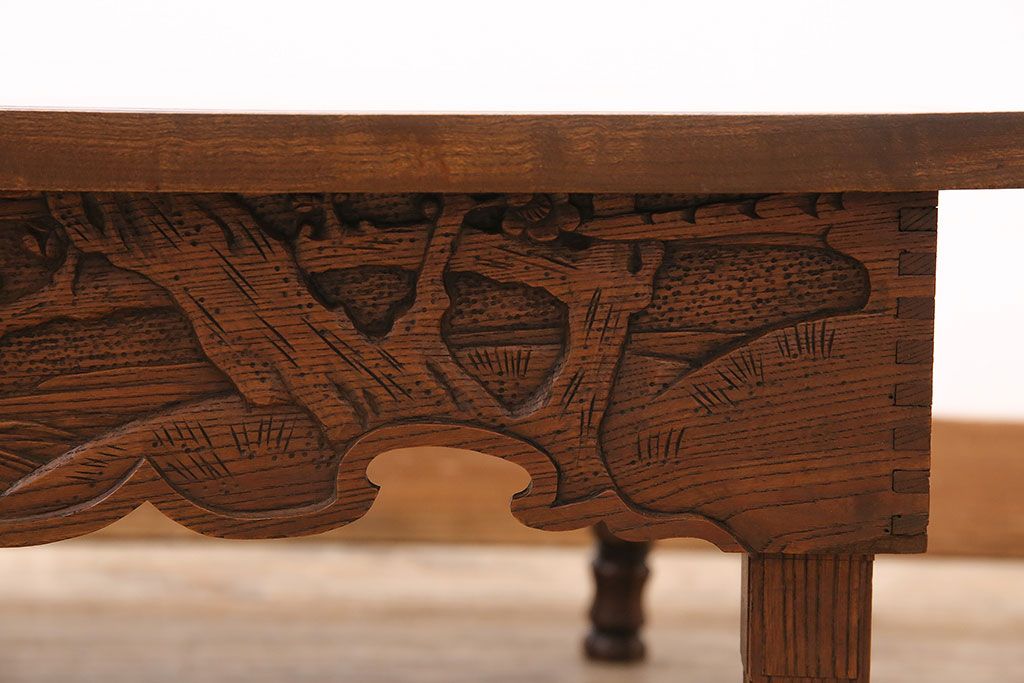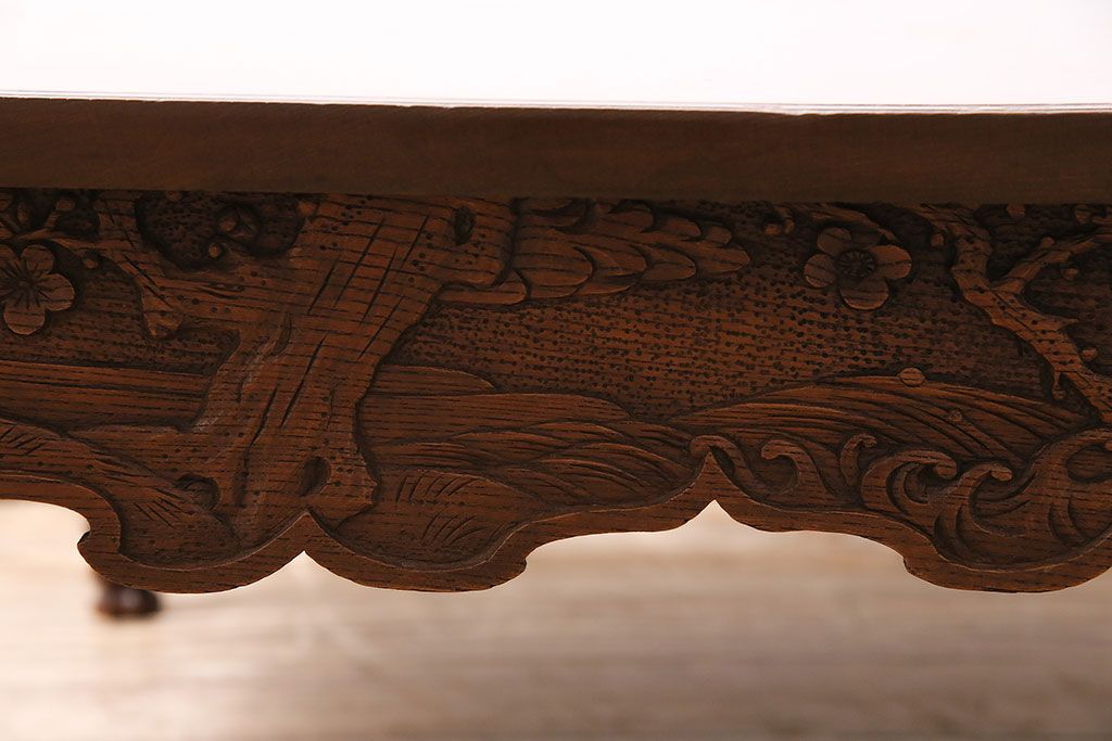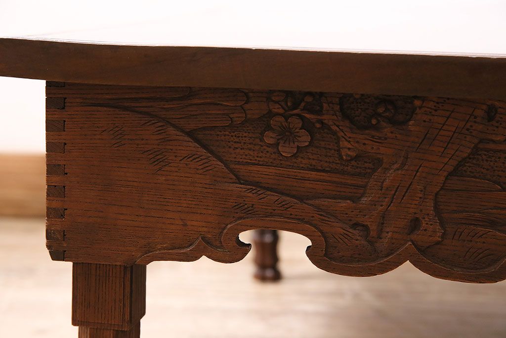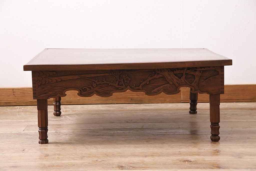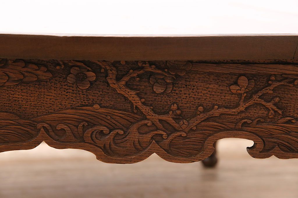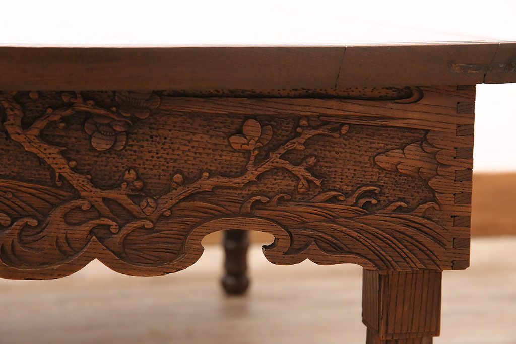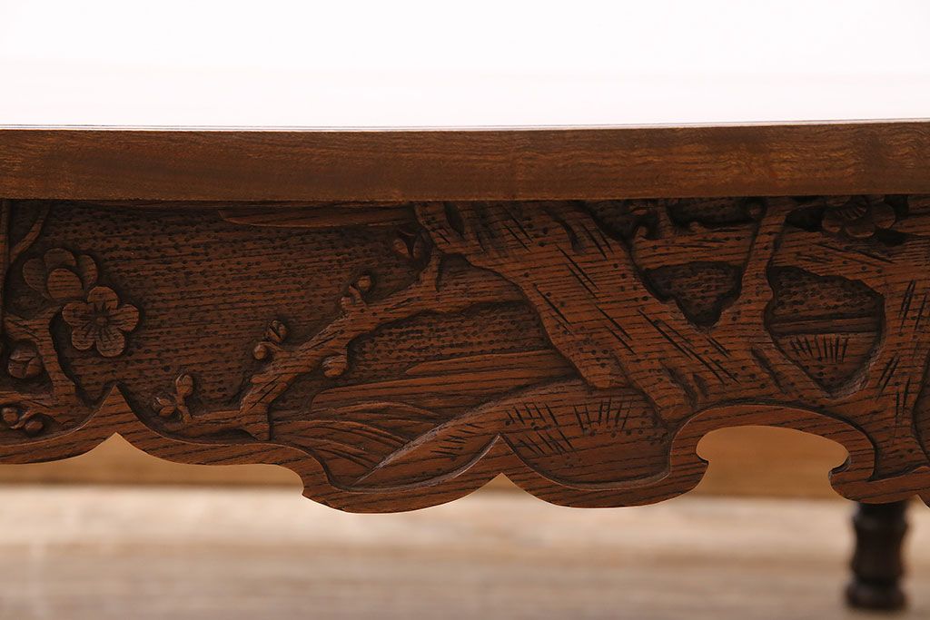 テーブル> おりたたみテーブル > アンティーク家具 明治大正期 工芸家具 希少!梅の彫刻が見事なちゃぶ台(ローテーブル、座卓、折りたたみ)(R-046078)
