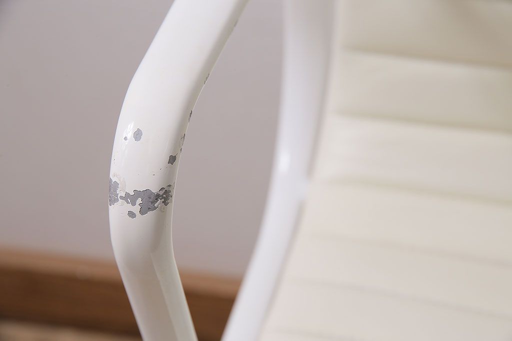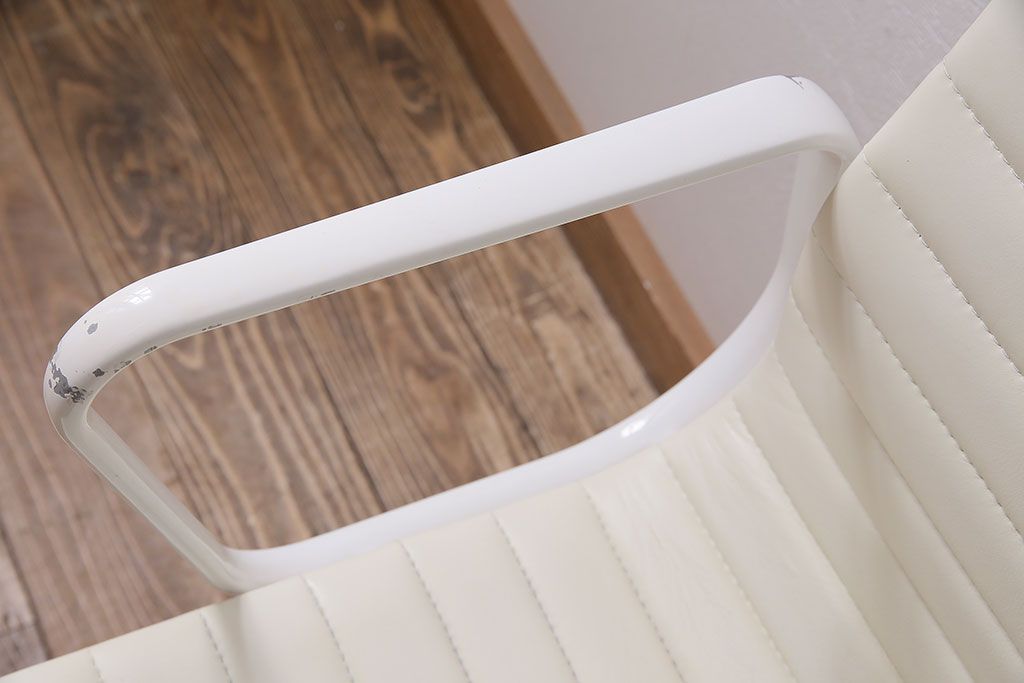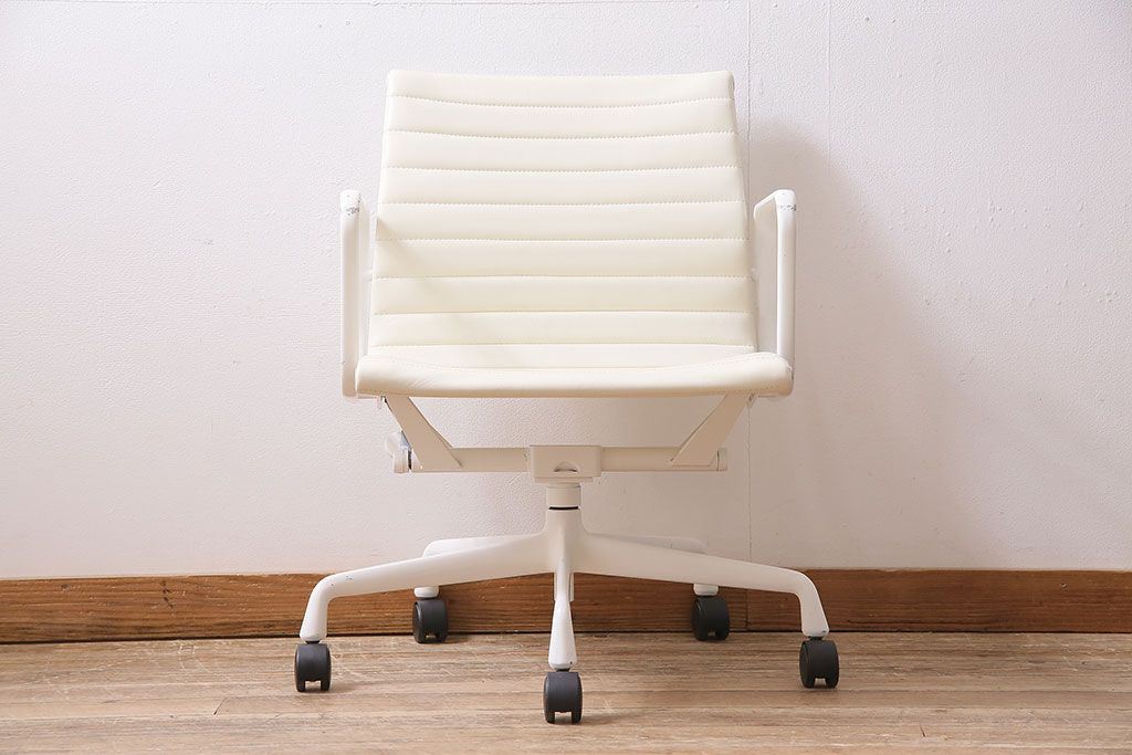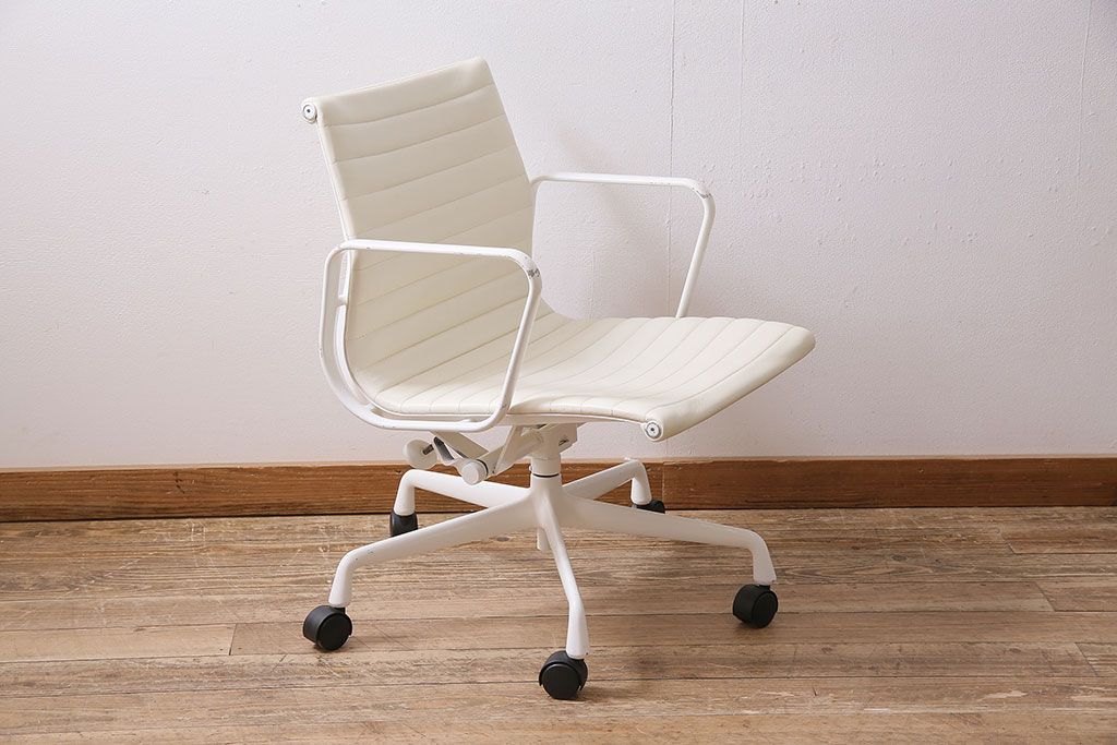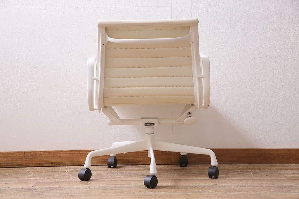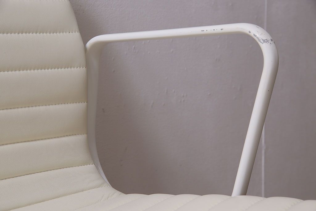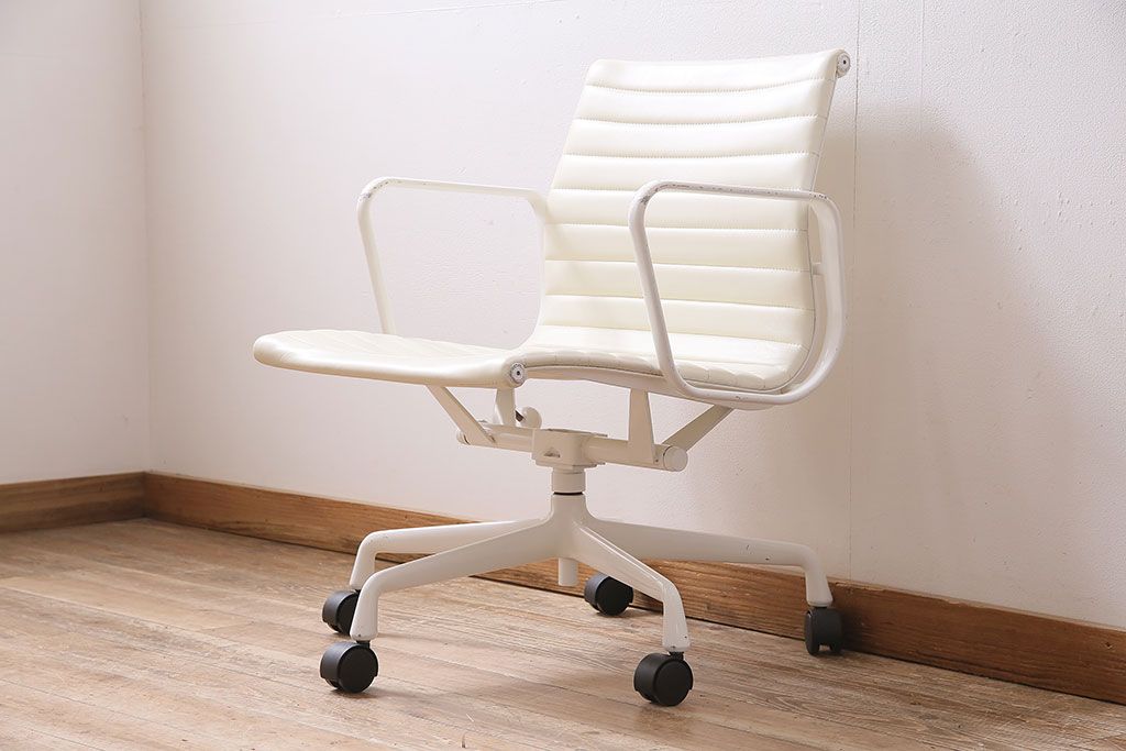 椅子・ベンチ> アームチェア > 中古 Hermanmiller(ハーマンミラー社) イームズアルミナムグループ マネジメントチェア アイボリーレザー ホワイトフレーム キャスター付(定価約31万円)(オフィスチェア、アームチェア、椅子)(R-046093)