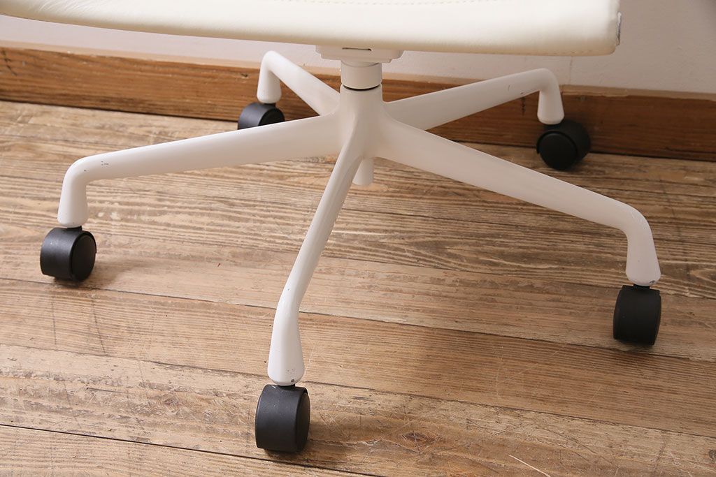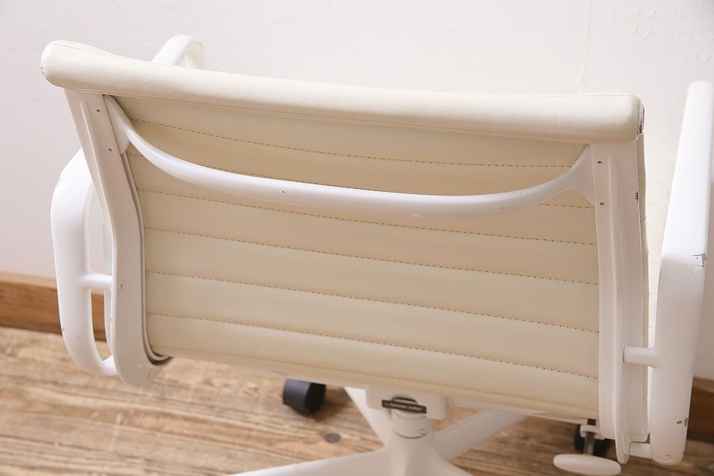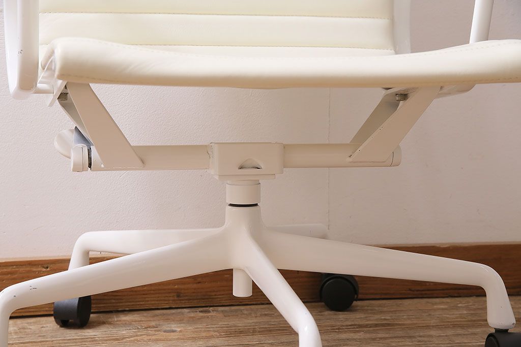 椅子・ベンチ> 回転椅子 > 中古 Hermanmiller(ハーマンミラー社) イームズアルミナムグループ マネジメントチェア アイボリーレザー ホワイトフレーム キャスター付(定価約31万円)(オフィスチェア、アームチェア、椅子)(R-046093)