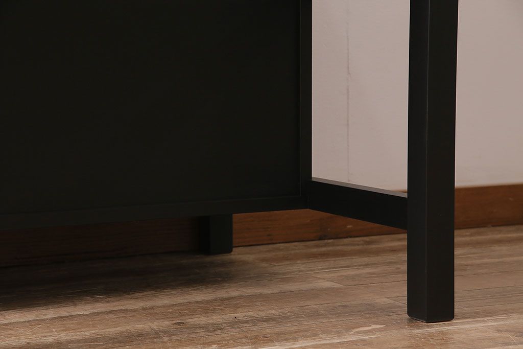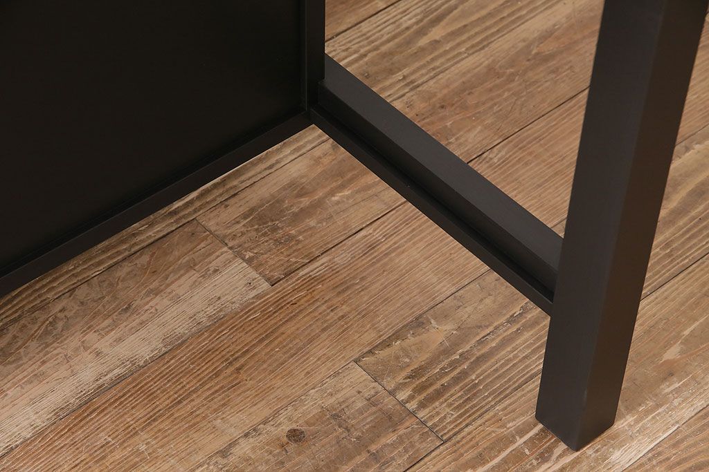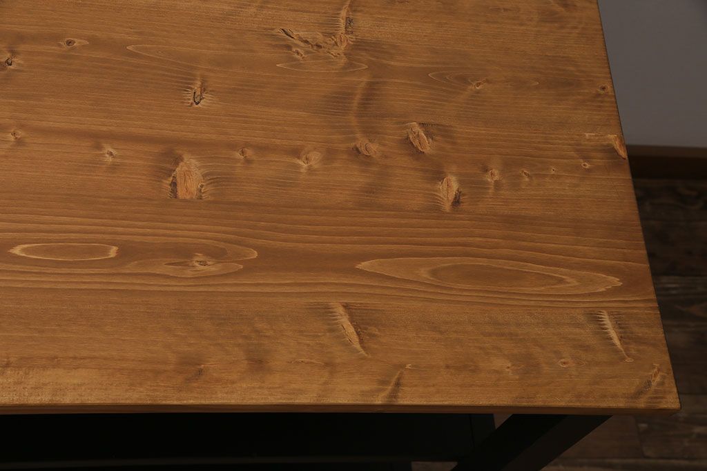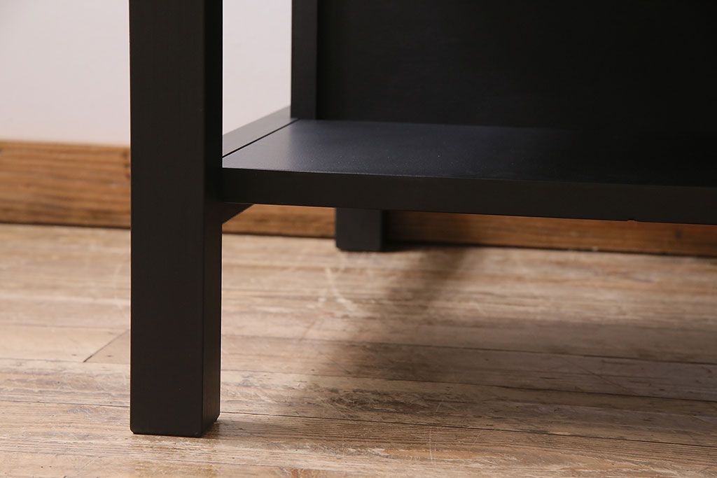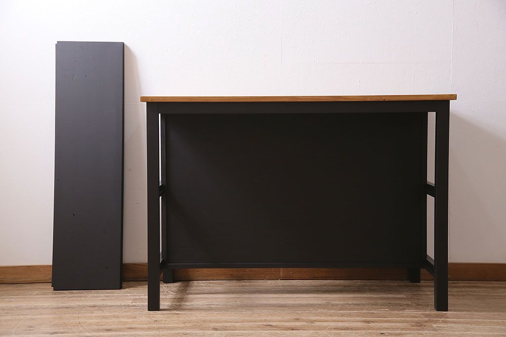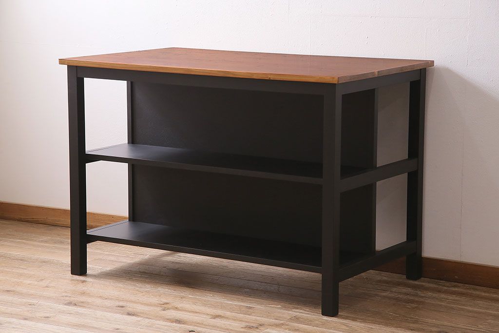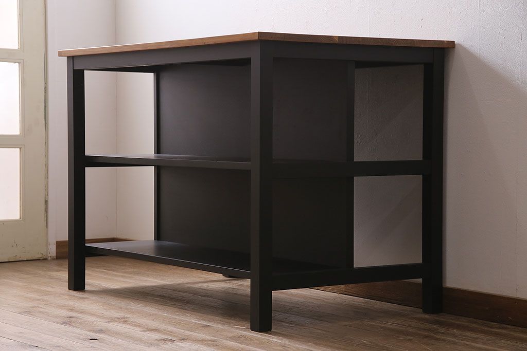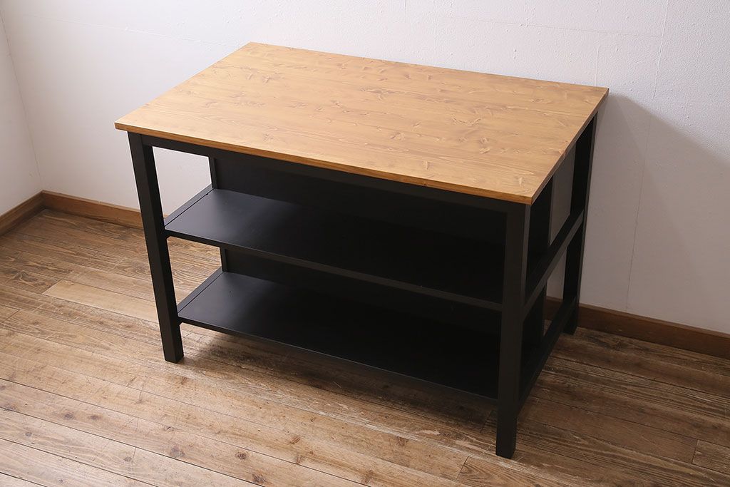 棚付き作業台を新規製作!他店の商品を参考にデザイン。無垢ボード、ヒバ材を使用。天板以外をマットブラックにペイントしツートンで仕上げ。(カウンターテーブル、カフェテーブル、机)