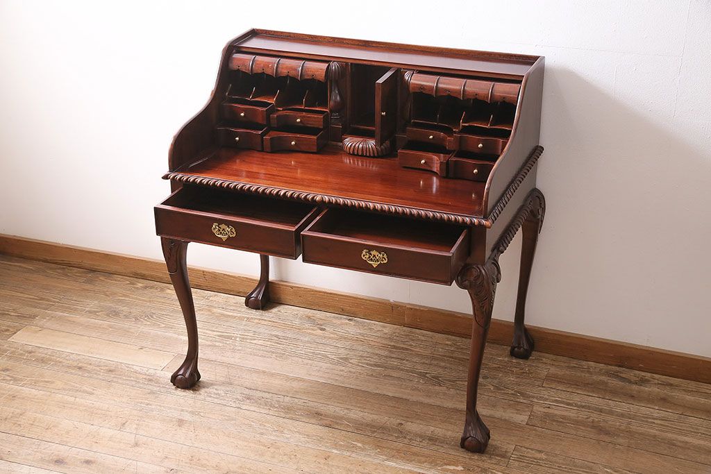 イギリスビンテージ チーク材 高級品 凝った作りのデスク(ワークデスク、勉強机、机)(R-046118)です。