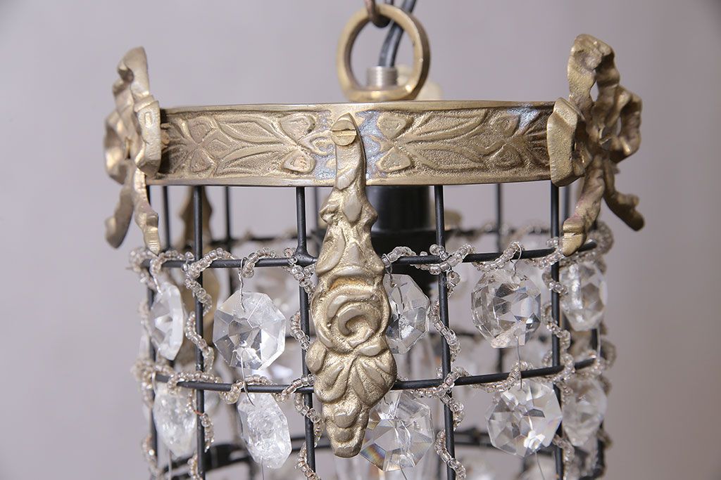 照明・ランプ > ヴィンテージ照明 イギリスビンテージ 真鍮 凝った装飾が華やかな印象を与える吊り下げ照明(天井照明)(R-046115)