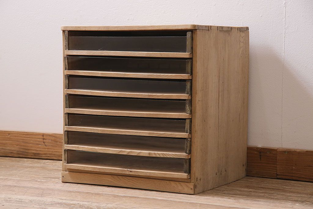レトロ家具 ストリップド(剥離) 素朴な木味が魅力の昭和レトロな糸ケース(小引き出し)(R-046080)