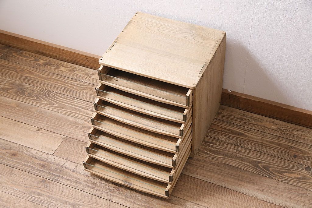 レトロ家具 ストリップド(剥離) 素朴な木味が魅力の昭和レトロな糸ケース(小引き出し)(R-046080)です。
