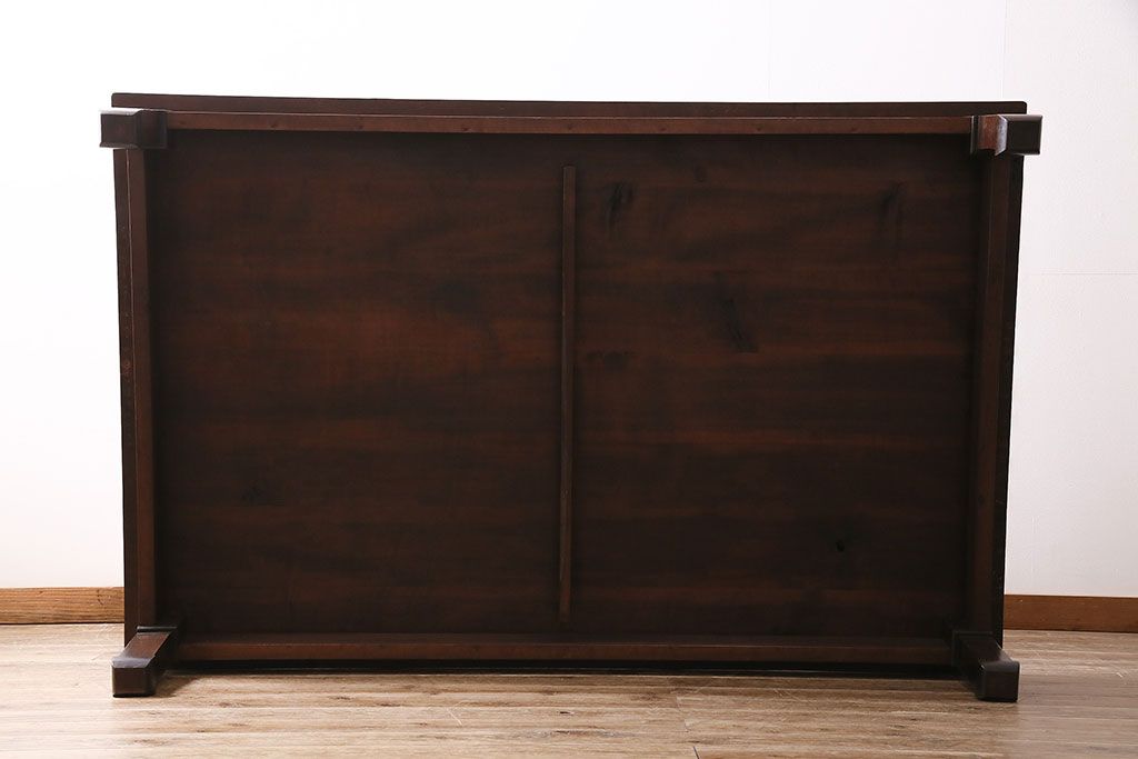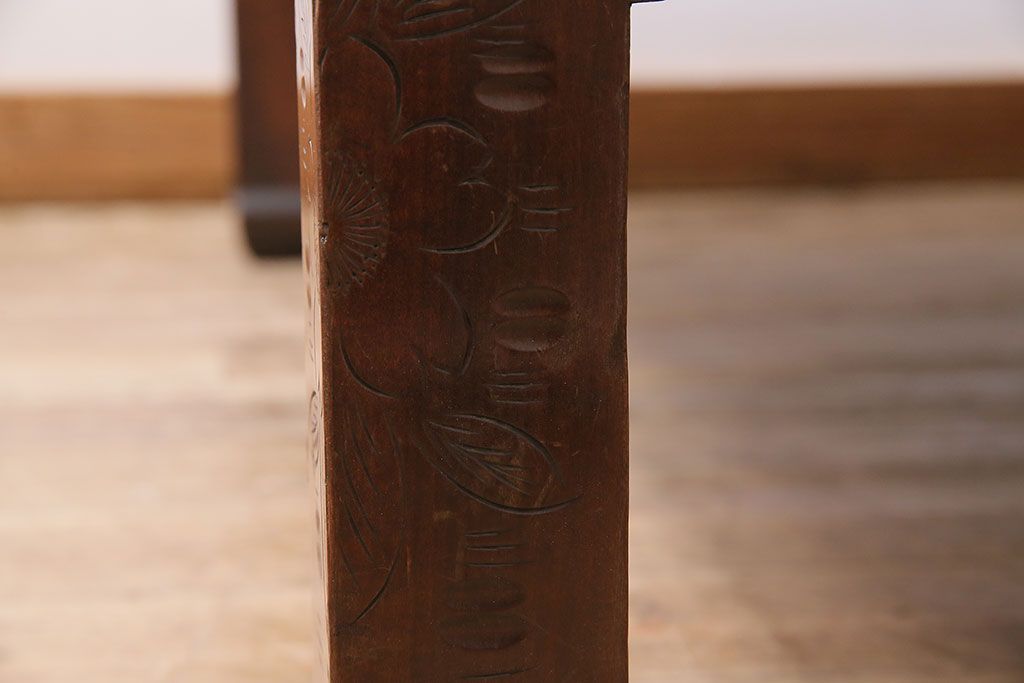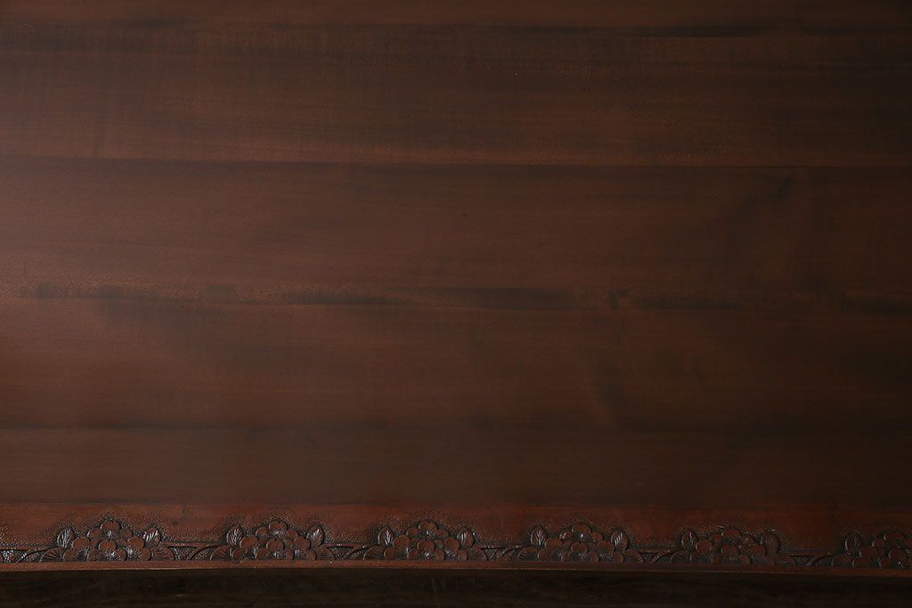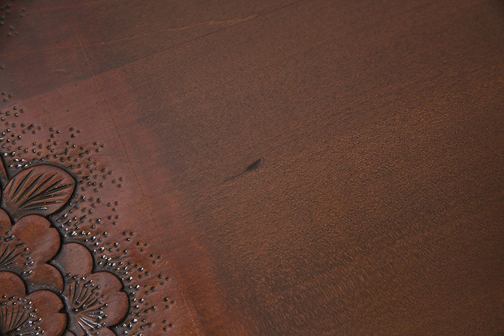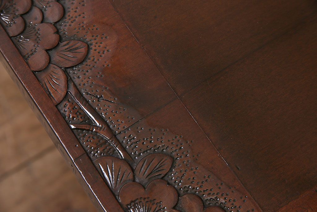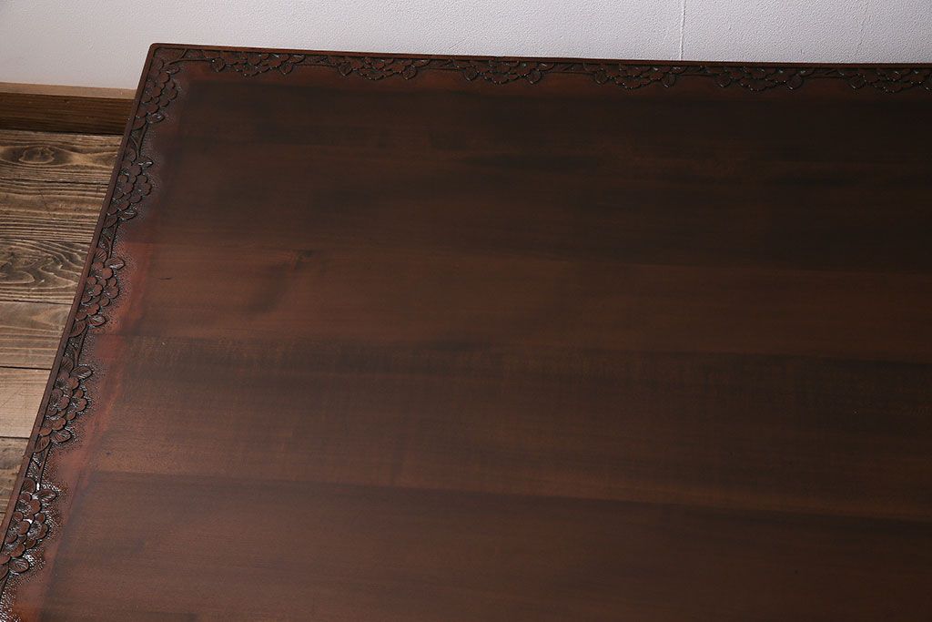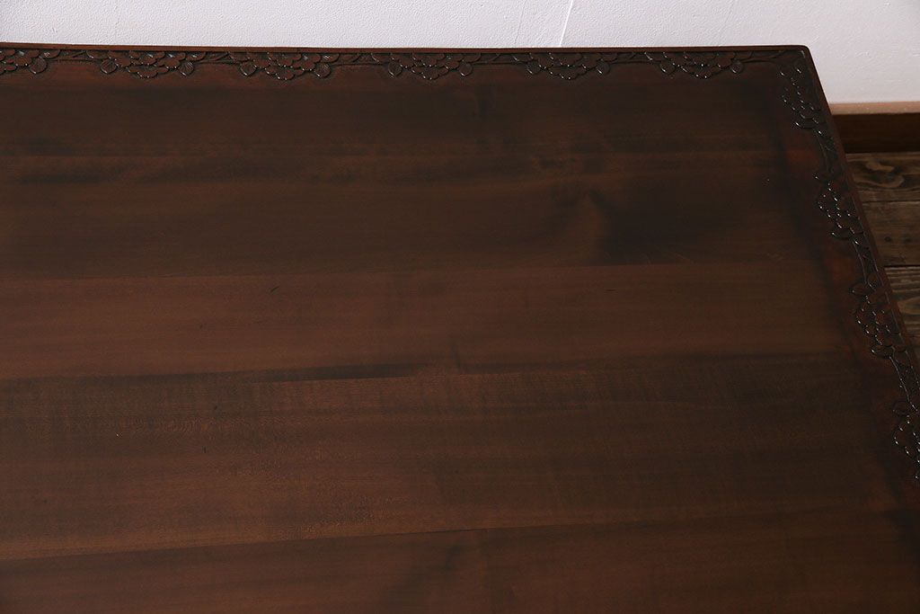民芸家具 > ヴィンテージ家具 伝統工芸 軽井沢彫り サクラの彫刻をあしらった特大サイズの座卓(センターテーブル、ビンテージ)(R-046141)