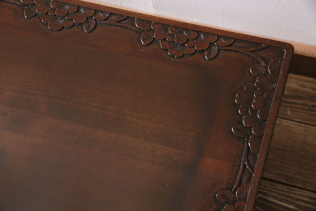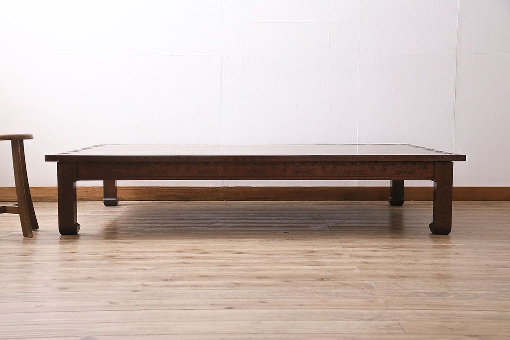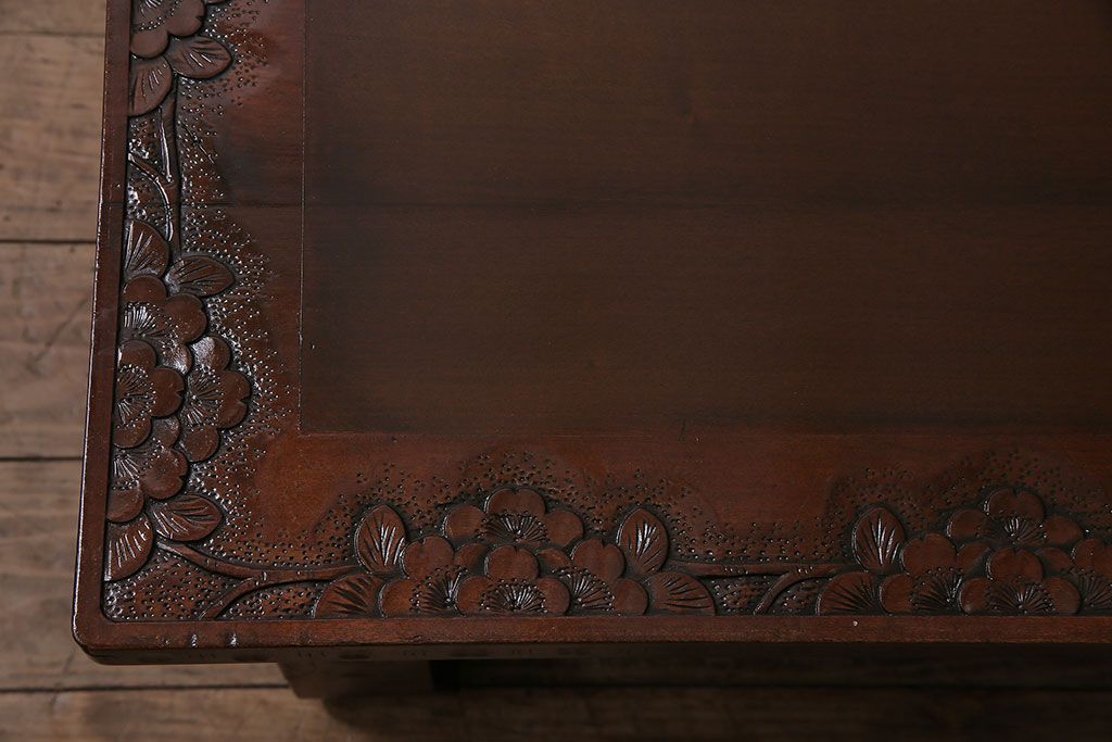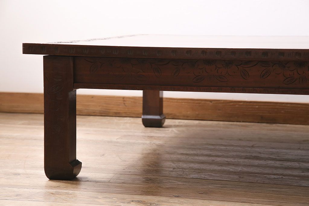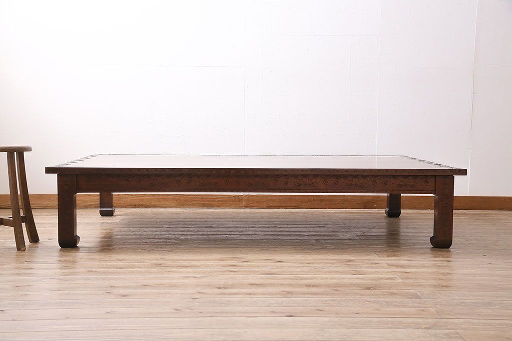 テーブル> 座卓 > ヴィンテージ家具 伝統工芸 軽井沢彫り サクラの彫刻をあしらった特大サイズの座卓(センターテーブル、ビンテージ)(R-046141)
