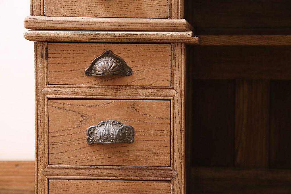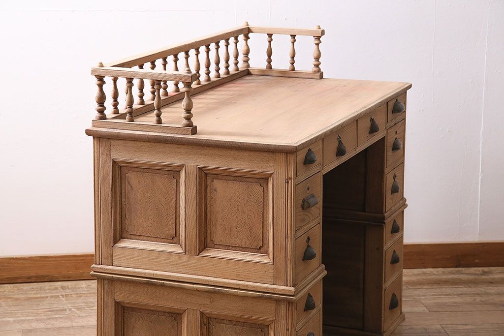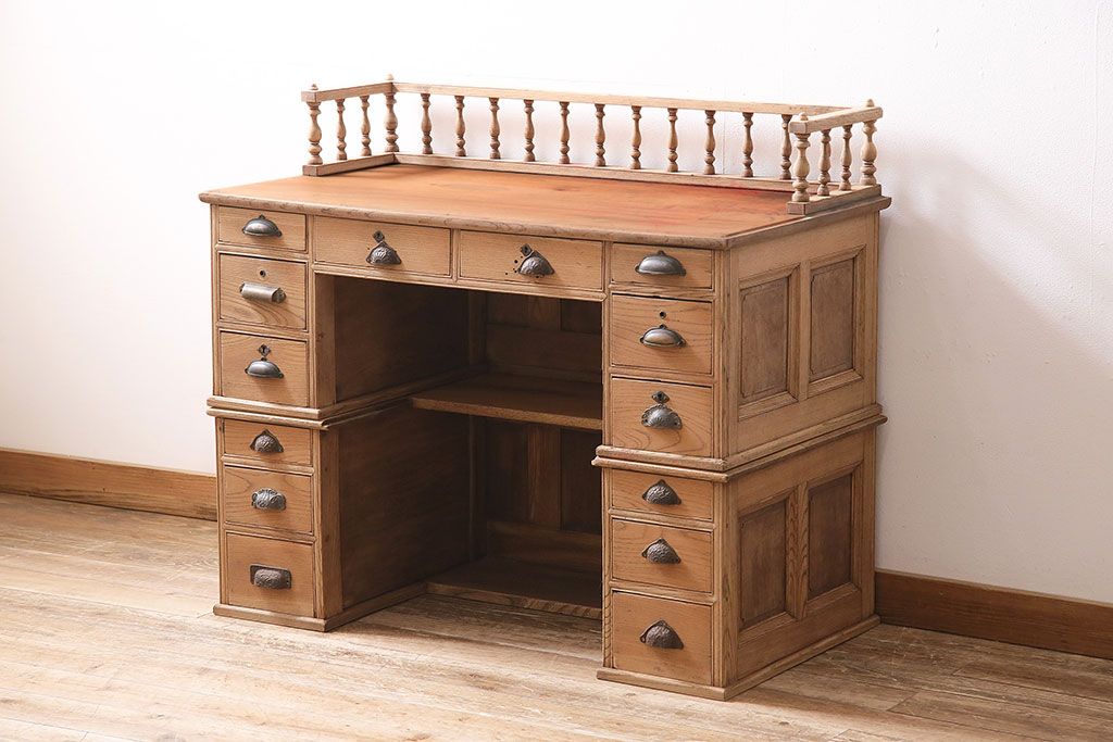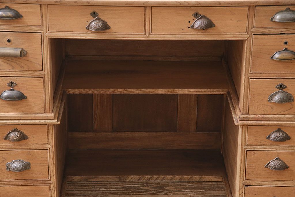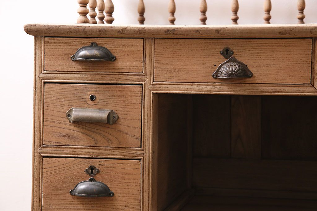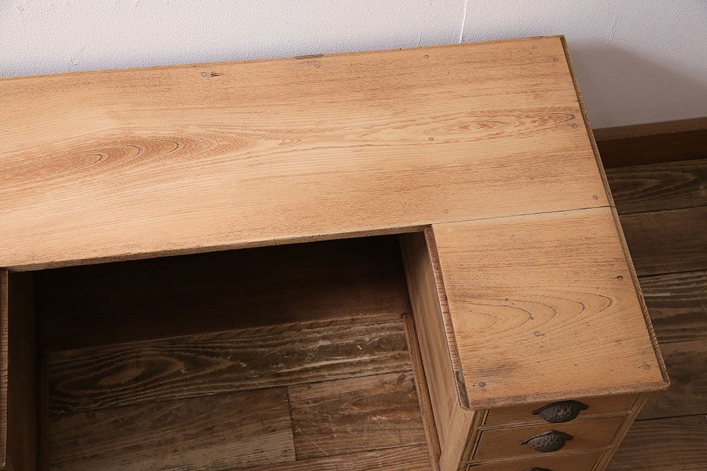 ストリップド(剥離)家具 > アンティーク家具 大正期 ストリップド(剥離) 総ケヤキ材 引き出し付き 座机にもなる2Wayデスク(両袖机、在宅ワーク、在宅用机、在宅ワーク、在宅用文机、在宅ワーク、在宅用平机、在宅ワーク、在宅用子供机)(R-046150)