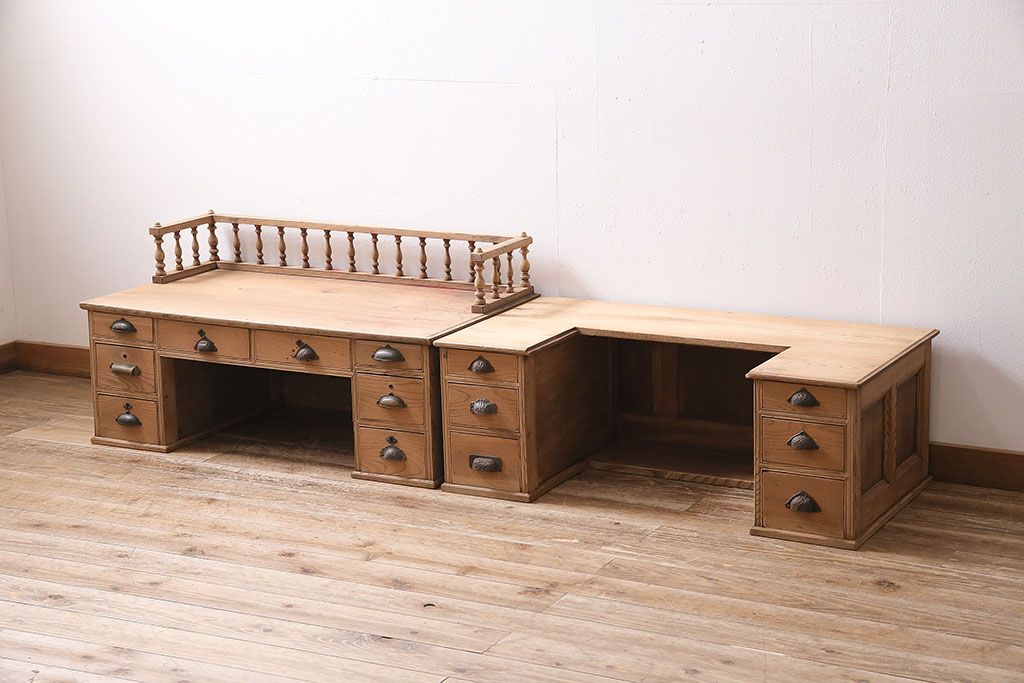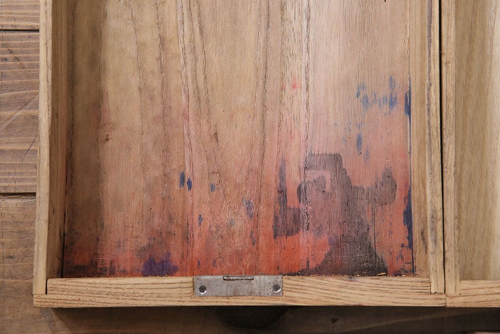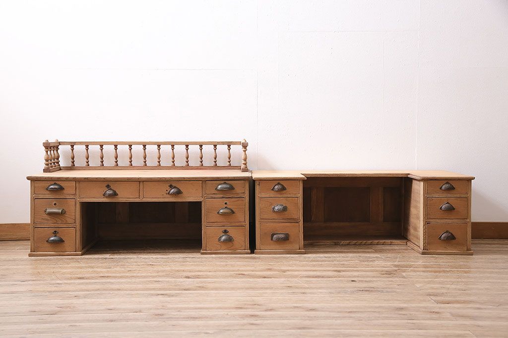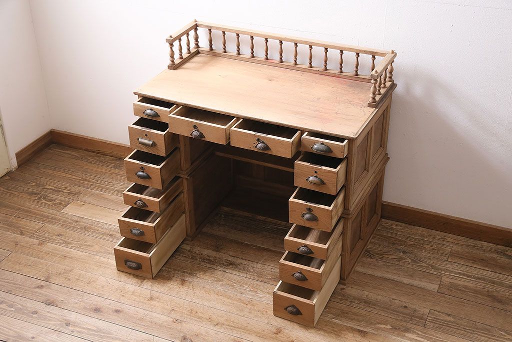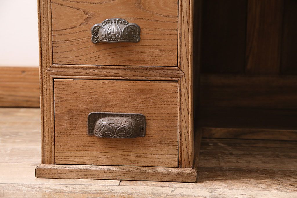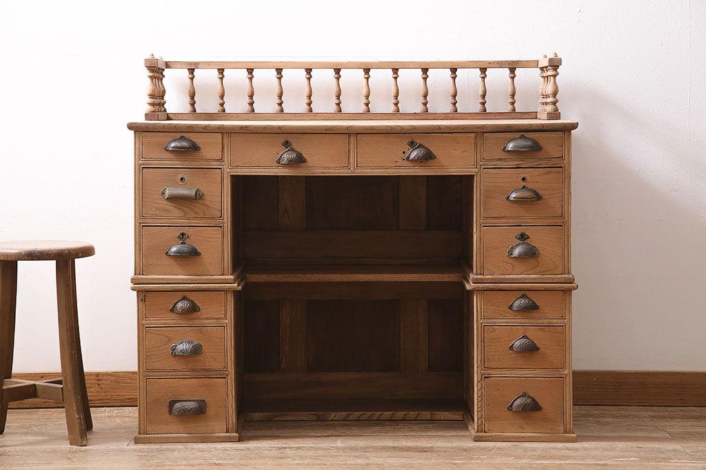 ストリップド(剥離)家具 > アンティーク家具 大正期 ストリップド(剥離) 総ケヤキ材 引き出し付き 座机にもなる2Wayデスク(両袖机、在宅ワーク、在宅用机、在宅ワーク、在宅用文机、在宅ワーク、在宅用平机、在宅ワーク、在宅用子供机)(R-046150)