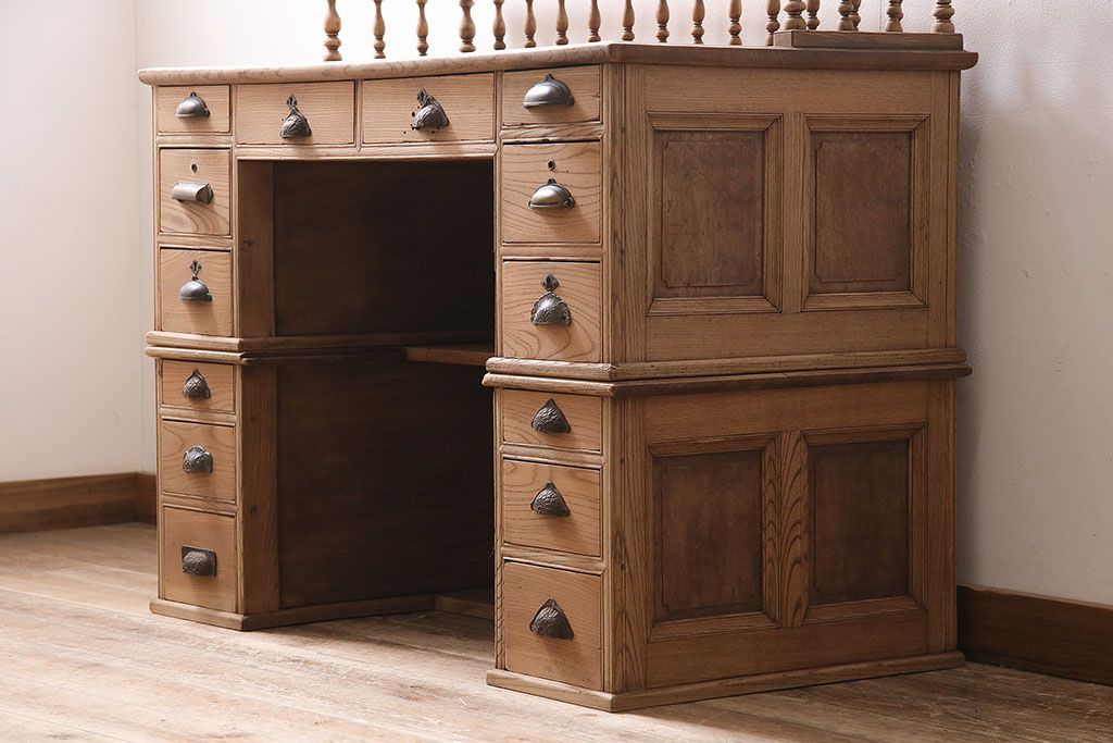 デスク> ワークデスク > アンティーク家具 大正期 ストリップド(剥離) 総ケヤキ材 引き出し付き 座机にもなる2Wayデスク(両袖机、在宅ワーク、在宅用机、在宅ワーク、在宅用文机、在宅ワーク、在宅用平机、在宅ワーク、在宅用子供机)(R-046150)