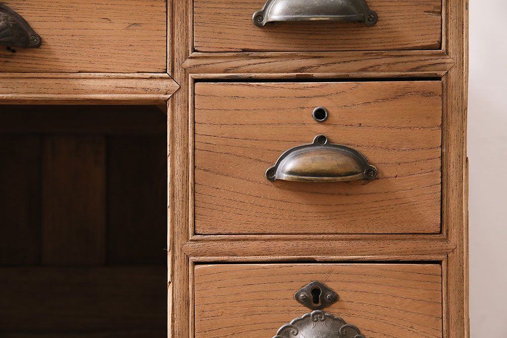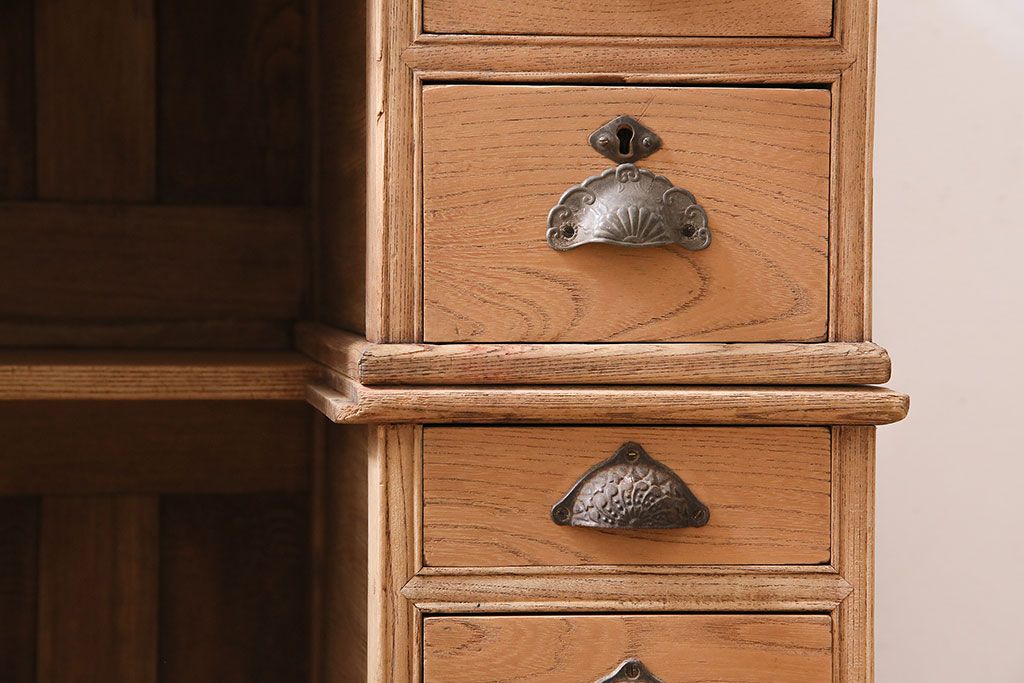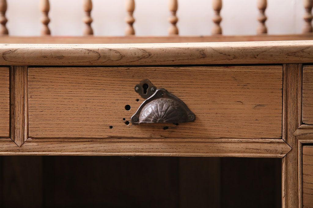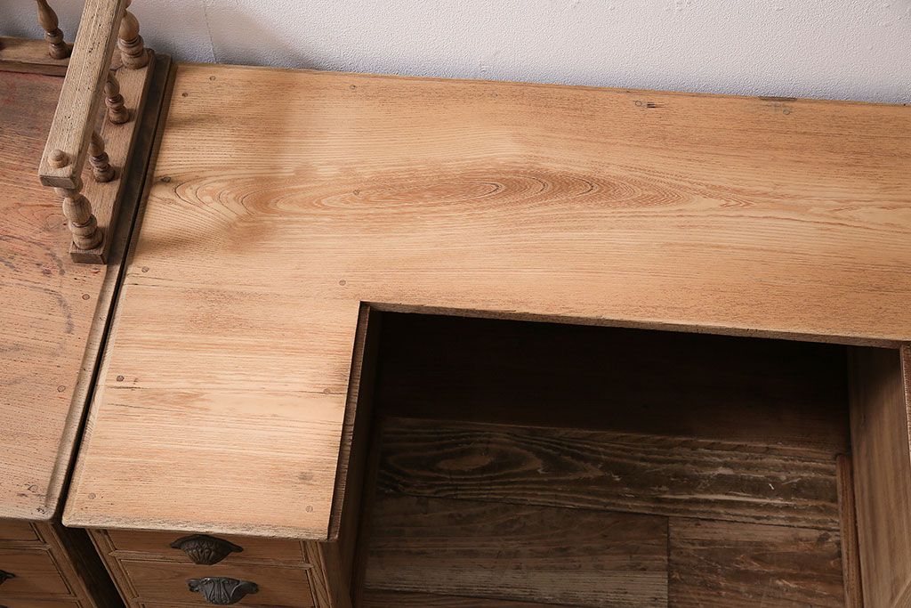デスク> 片袖机・両袖机 > アンティーク家具 大正期 ストリップド(剥離) 総ケヤキ材 引き出し付き 座机にもなる2Wayデスク(両袖机、在宅ワーク、在宅用机、在宅ワーク、在宅用文机、在宅ワーク、在宅用平机、在宅ワーク、在宅用子供机)(R-046150)