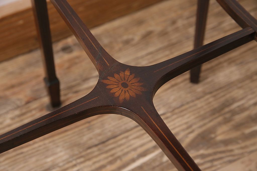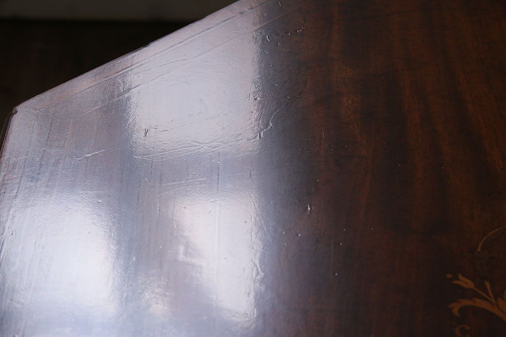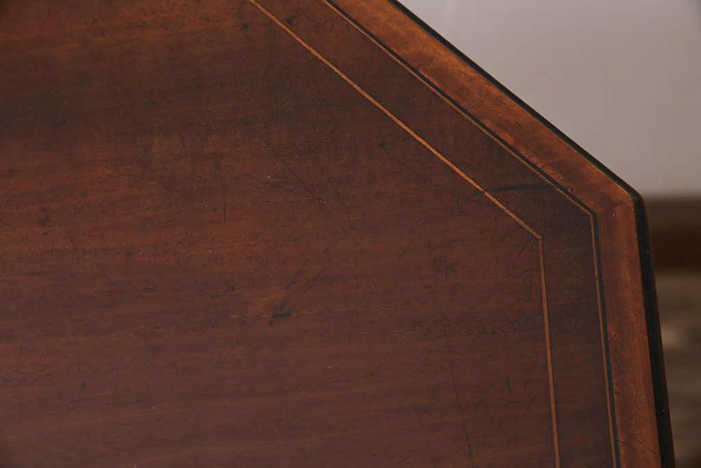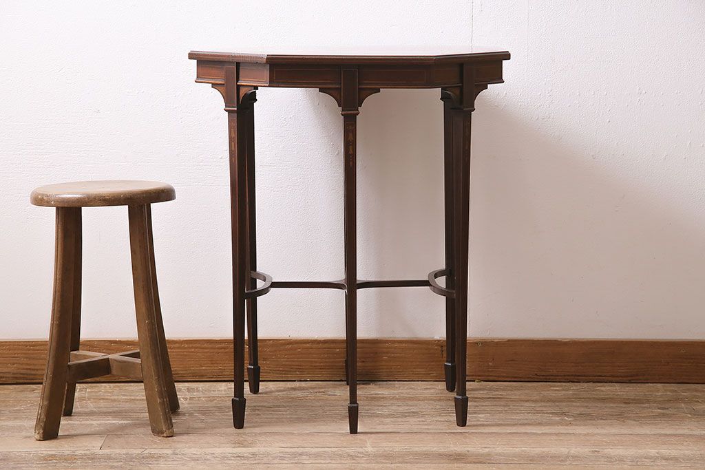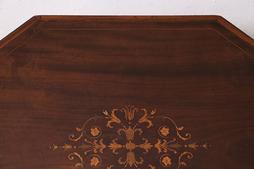 ラフジュ工房> テーブル> サイドテーブル > アンティーク家具 イギリスアンティーク 上手物 マホガニー材 象嵌細工 八角形の天板がお洒落なオケージョナルテーブル(サイドテーブル、花台、オーバルテーブル、カフェテーブル)(R-046153)