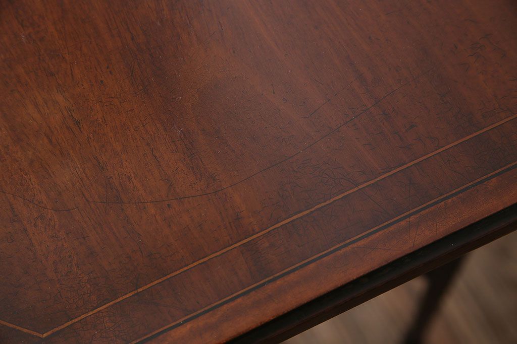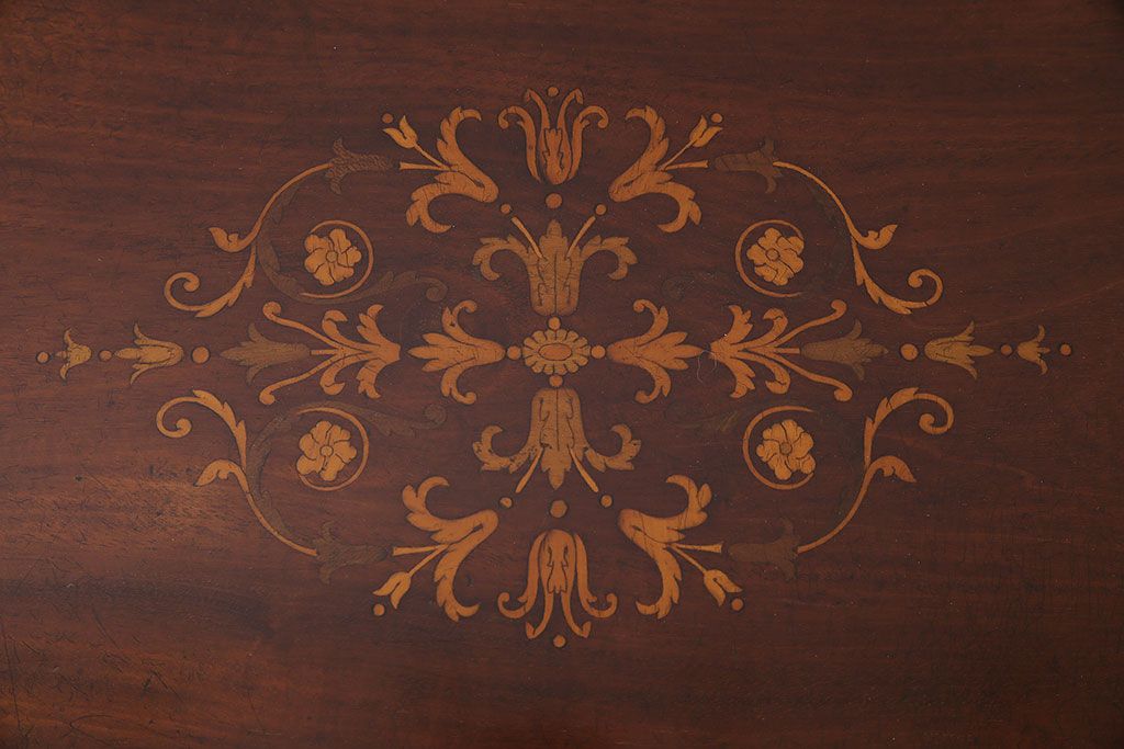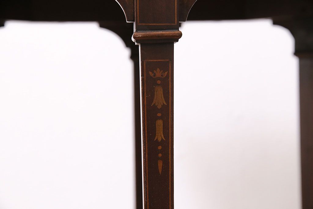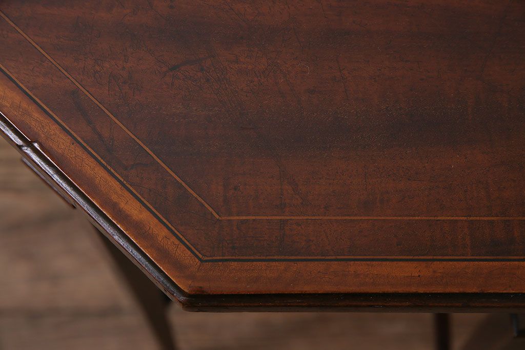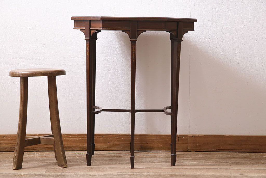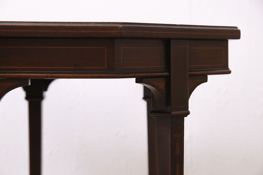 ラフジュ工房> テーブル> コンソールテーブル > アンティーク家具 イギリスアンティーク 上手物 マホガニー材 象嵌細工 八角形の天板がお洒落なオケージョナルテーブル(サイドテーブル、花台、オーバルテーブル、カフェテーブル)(R-046153)