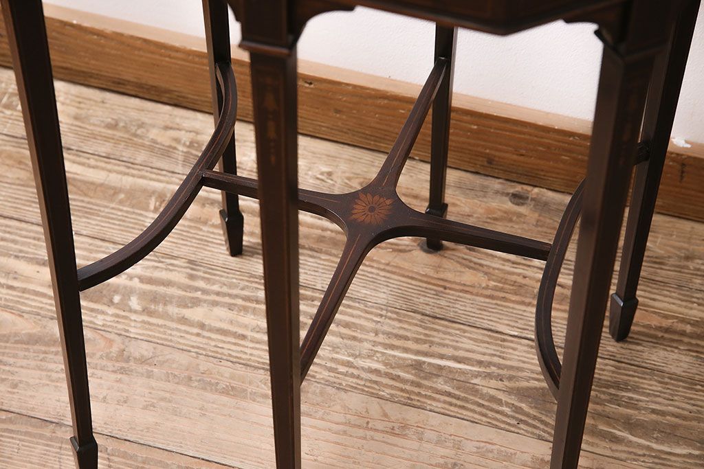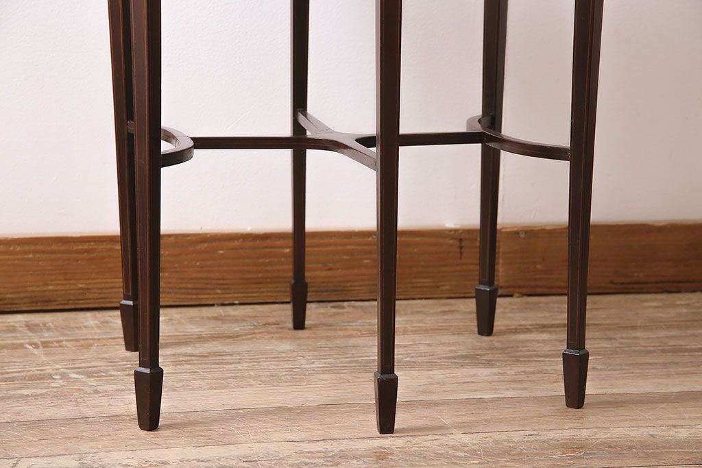ラフジュ工房> 花台・飾り台 > アンティーク家具 イギリスアンティーク 上手物 マホガニー材 象嵌細工 八角形の天板がお洒落なオケージョナルテーブル(サイドテーブル、花台、オーバルテーブル、カフェテーブル)(R-046153)